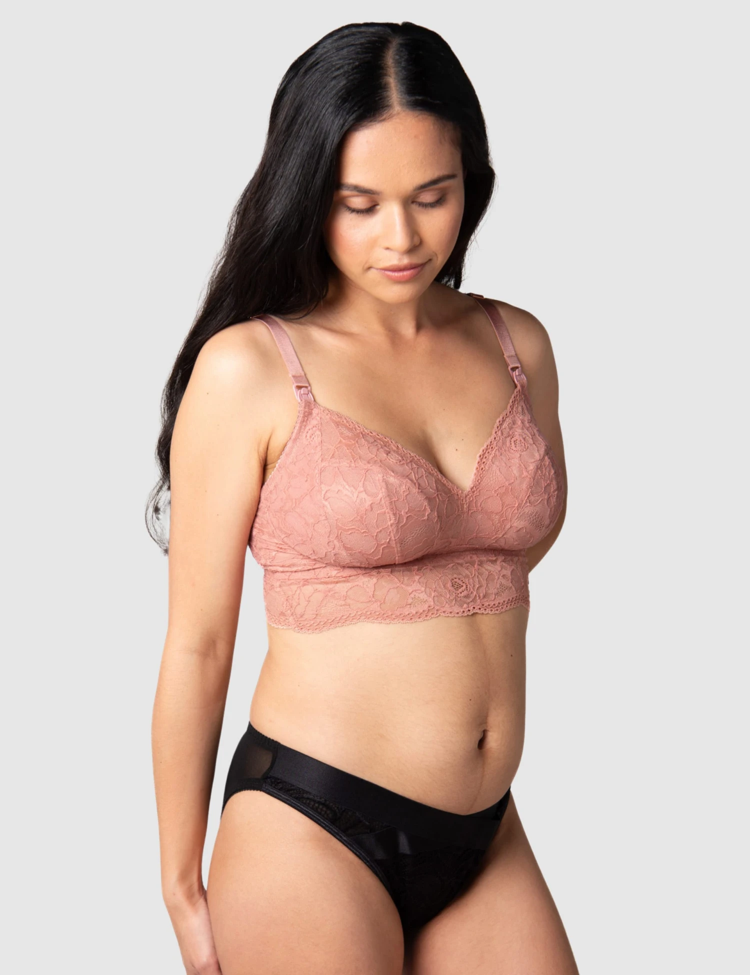 This nursing bralette from Hotmilk is crafted with rich lace overlays for a luxurious finish. It’s made with an adjustable hook-and-eye fastening and features nursing clips and side-sling support for easy feeding times. The wide under-band and non-padded cups ensure a comfortable feel.