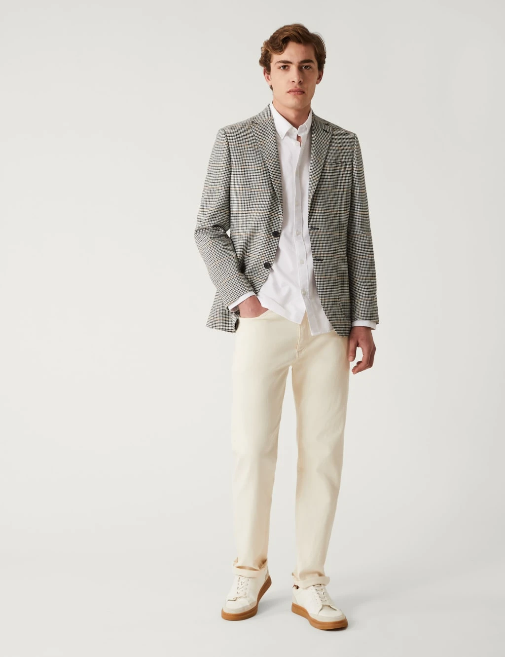 A checked print lends timeless appeal to this linen-blend single-breasted jacket. It’s made in a tailored fit and crafted from textured fabric woven at the Italian Nova Fides mill. Notch lapels, a chest pocket and contrasting buttons provide traditional detail. There are two back vents for ease of movement and a full lining for comfort. The jacket is complete with stitching around the edges of the lapel and pockets, adding a crisp finish to this formal piece.