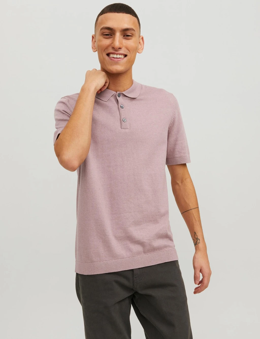 This polo shirt by JACK & JONES is knitted from cotton-rich yarn for a luxurious feel. It has a regular fit with short sleeves for versatile wear. A collared neck and a three-button placket offer a classic finish.