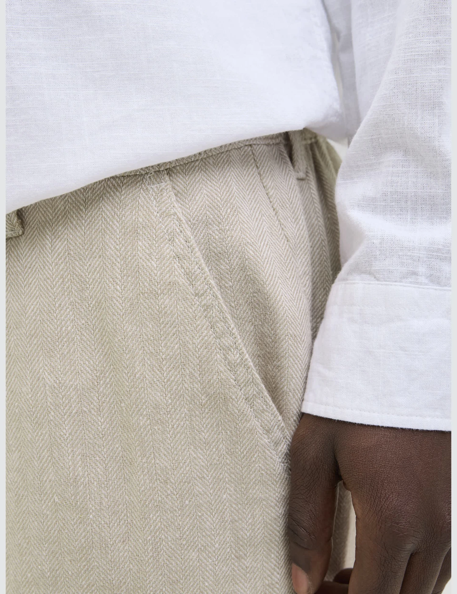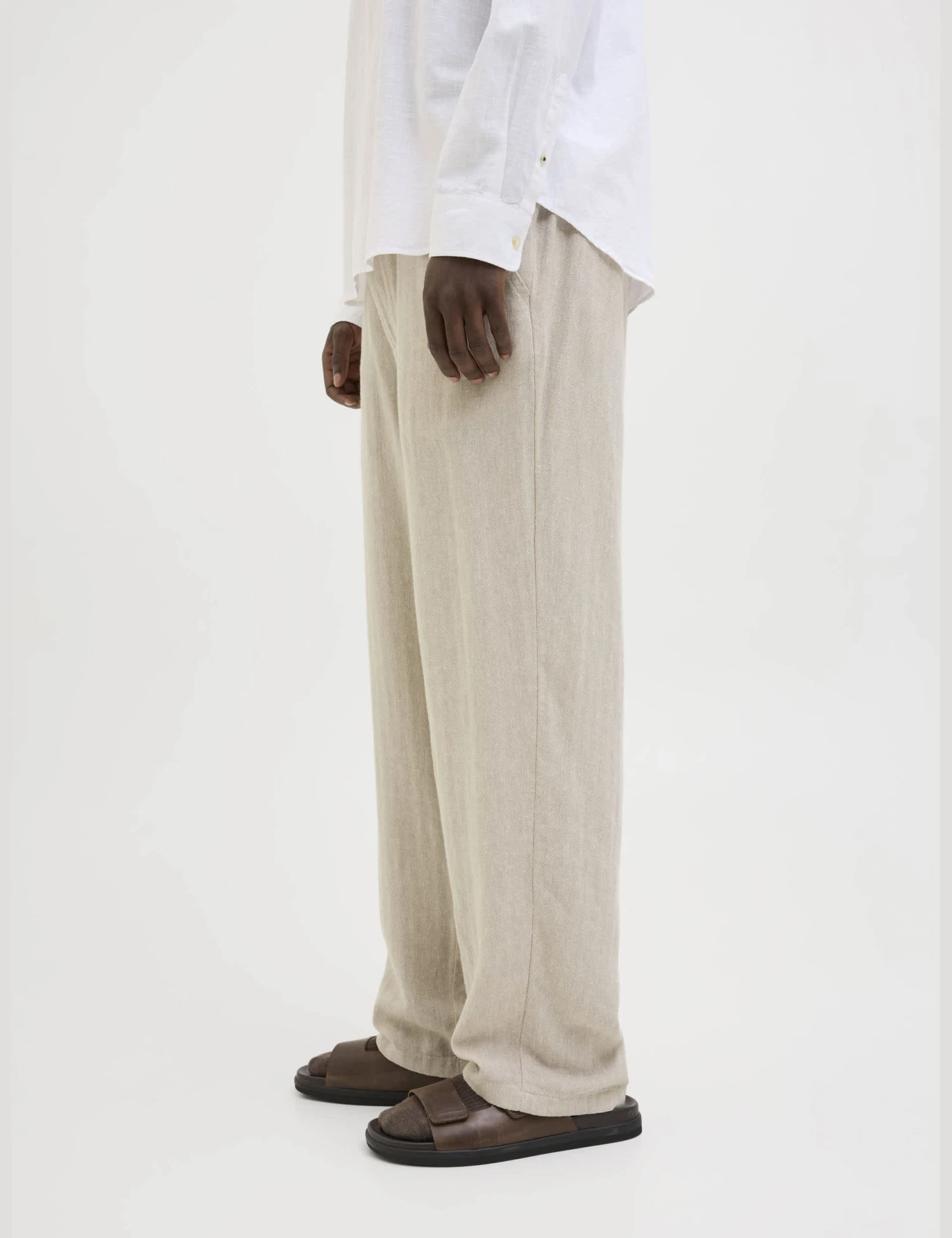 Update your warm-weather wardrobe with this linen-rich chinos from JACK & JONES. Loose fit, for an easy-breezy silhouette that’s made for smart-casual dressing. A drawcord tie at the waist adds neat detail.