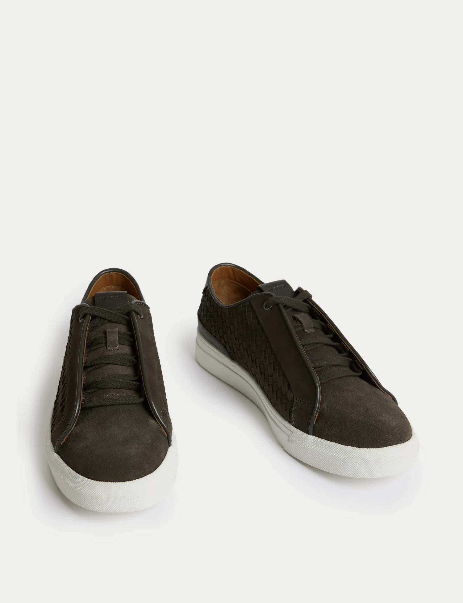 Put your best foot forward with these leather trainers from Jaeger. The smooth leather upper features interwoven panels for a distinctive look, plus a durable rubber sole and a lace-up fastening.