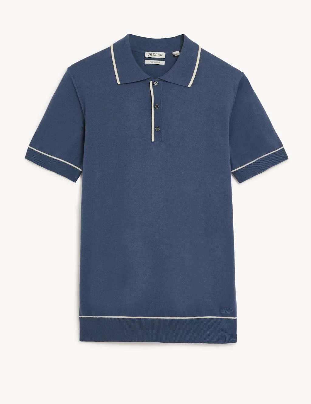 This Jaeger polo is sumptuously soft and light, with a 14-gauge pure combed cotton construction knitted at the luxury Olcese Ferrari mill in Italy. The classic collar neckline and button-up placket lend smart-casual appeal to the design. Tipped details and branding on the buttons and hem add a refined finishing touch. Use yours to elevate a simple pair of chinos and trainers.