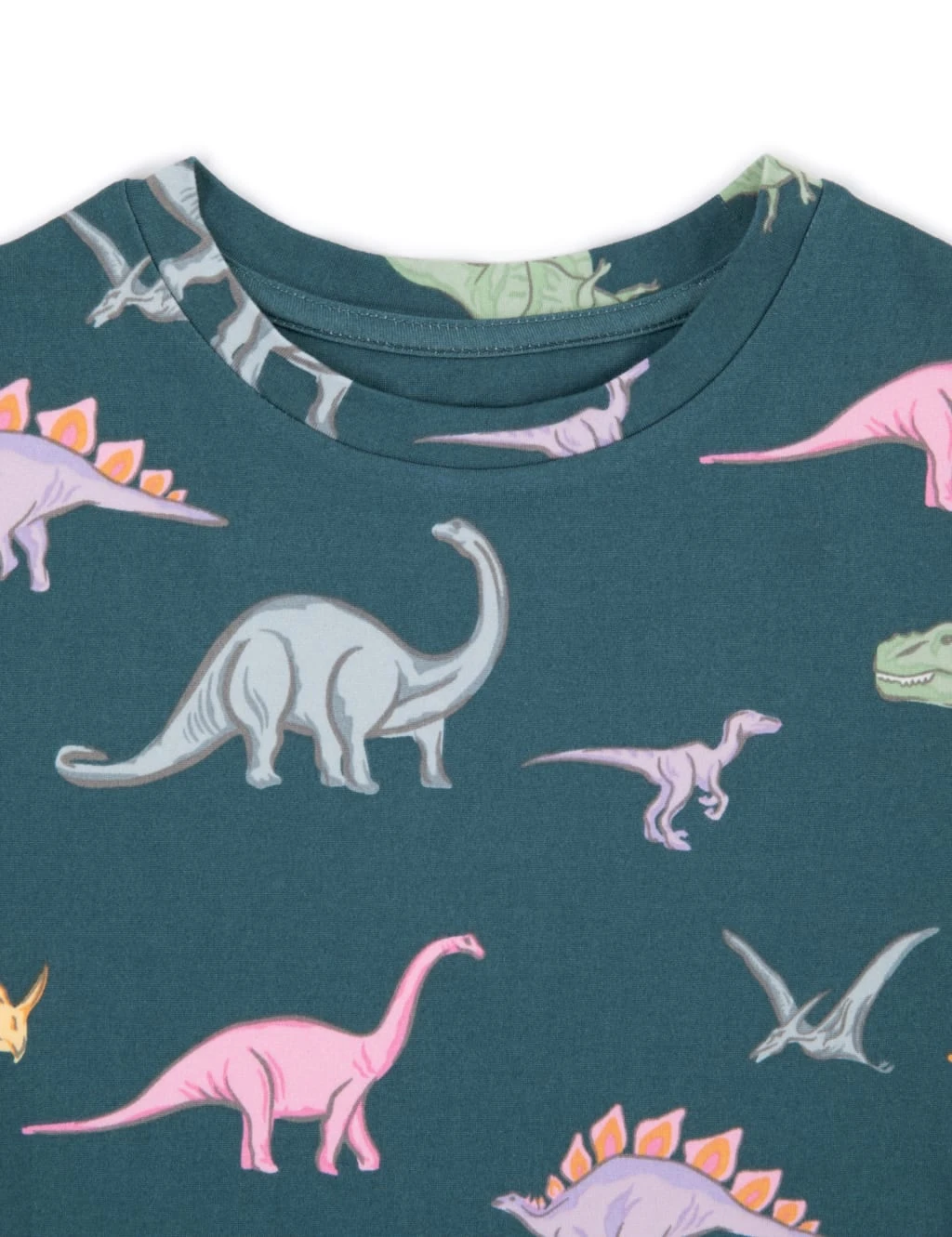 This Chelsea Peers pyjama set is printed with a pattern of friendly dinosaurs. It’s made to a regular fit from soft, stretchy fabric. The matching set includes a long-sleeved top with a crew neckline, plus a pair of full-length bottoms with a comfy elasticated waist and cuffed ankles.