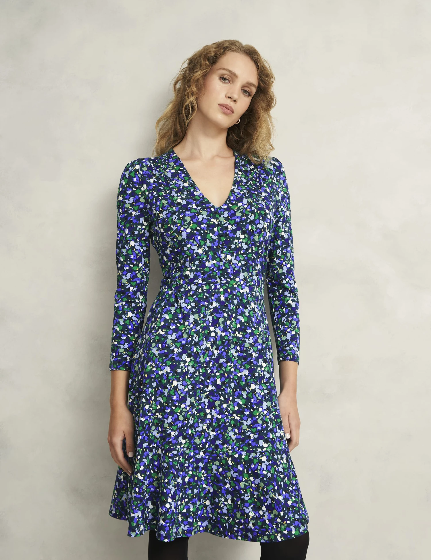 A vibrant floral print brings a fresh feel to this jersey dress by Hobbs. It’s cut in a regular fit, with a feminine V-neckline and a flattering fit-and-flare shape. This long-sleeved piece falls to a versatile knee length.