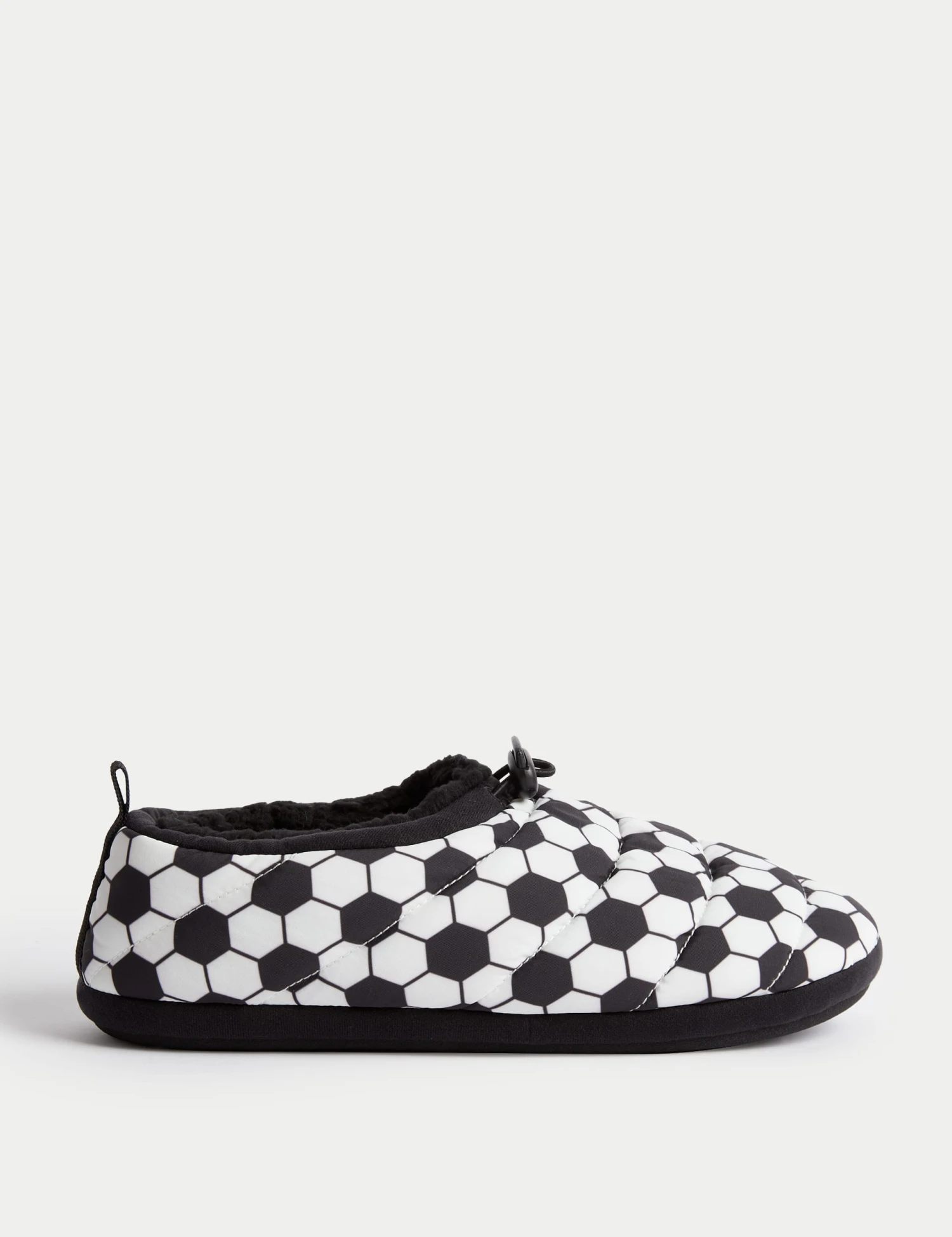 These football-themed slippers are perfect for their post-practice chill time. Easy slip-on style, with a toggle fastening for a snuggly fit. Made with a padded upper and a cosy fleece lining. Grippy outsoles ensure safety of hard floors.