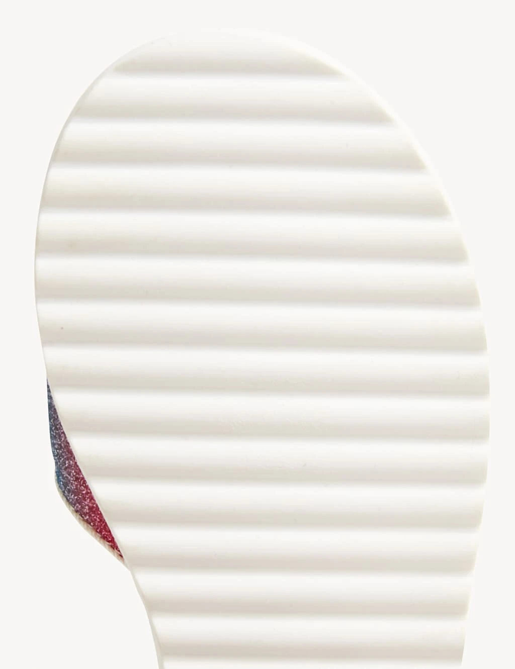 Let little ones shine bright with these rainbow glitter sandals. Standard fit, designed with a flat footbed for comfort. Riptape fastenings make sure they’re easy to get on and off.