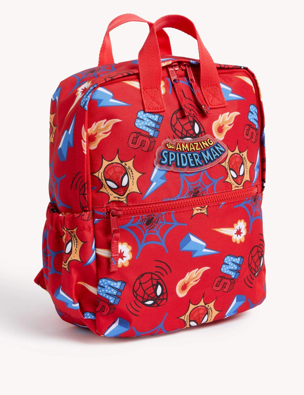Every school day’s an adventure with this Spider-Man™ backpack. Innovative Stormwear technology protects against light showers, while padded straps and a lightweight design add comfort. Features a main zipped compartment big enough to include the matching lunch box, plus an additional front pocket and a water bottle holder. Finished with a top handle and a name label on the inside.