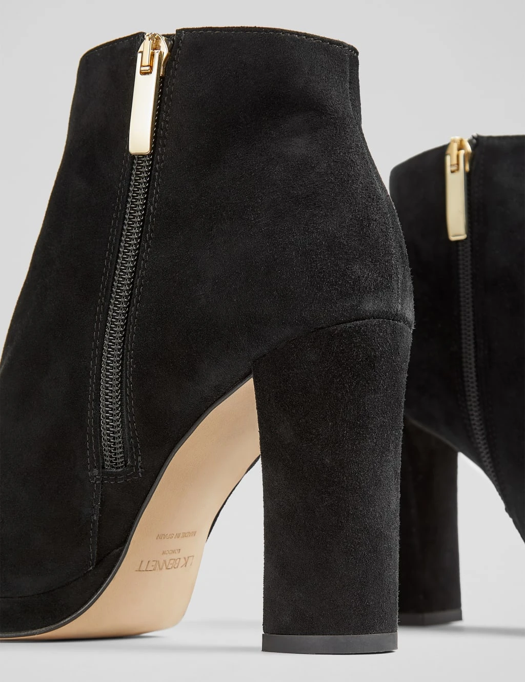 Add a statement finish to your look with these ankle boots from LK Bennett. They’re crafted from smooth leather and feature a zip fastening on the inside for easy on-off wear. A high-block heel and platform sole create a striking silhouette to bring confidence to your stride.