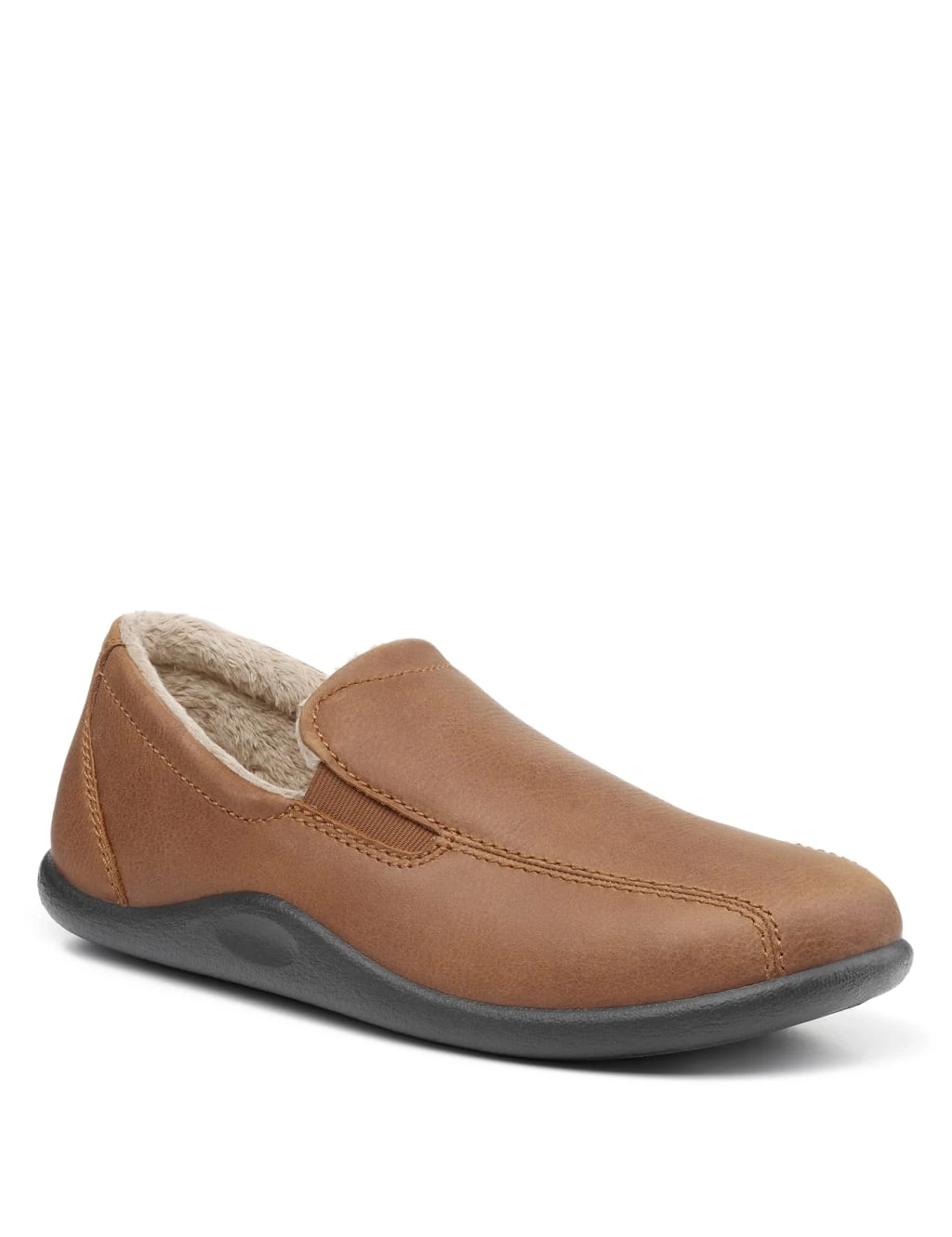 Step into cushiony comfort with these leather slippers from Hotter. This easy slip-on design features a breathable OrthoLite® insole to keep feet feeling cool and supported. Faux fur trims inside add an extra touch of cosiness.