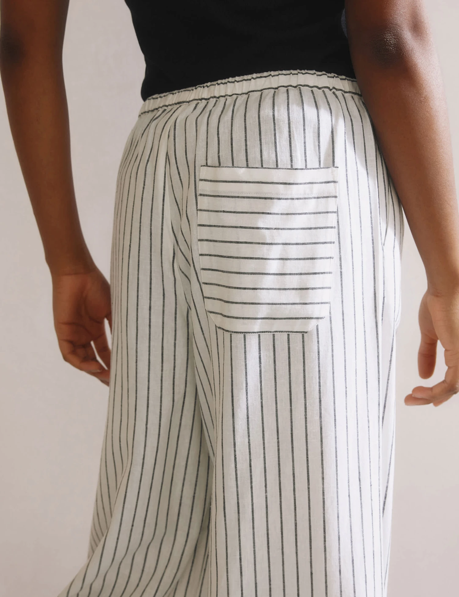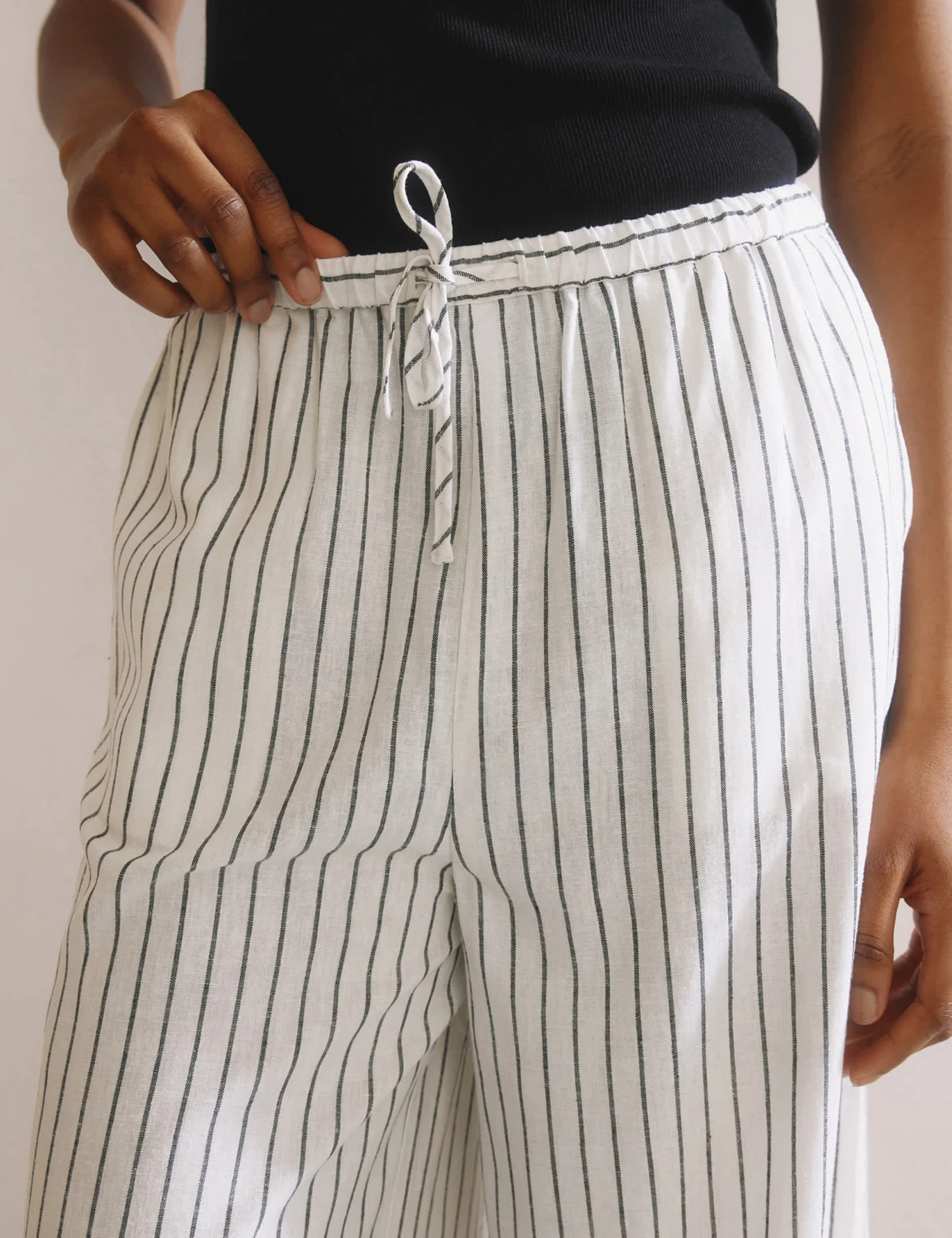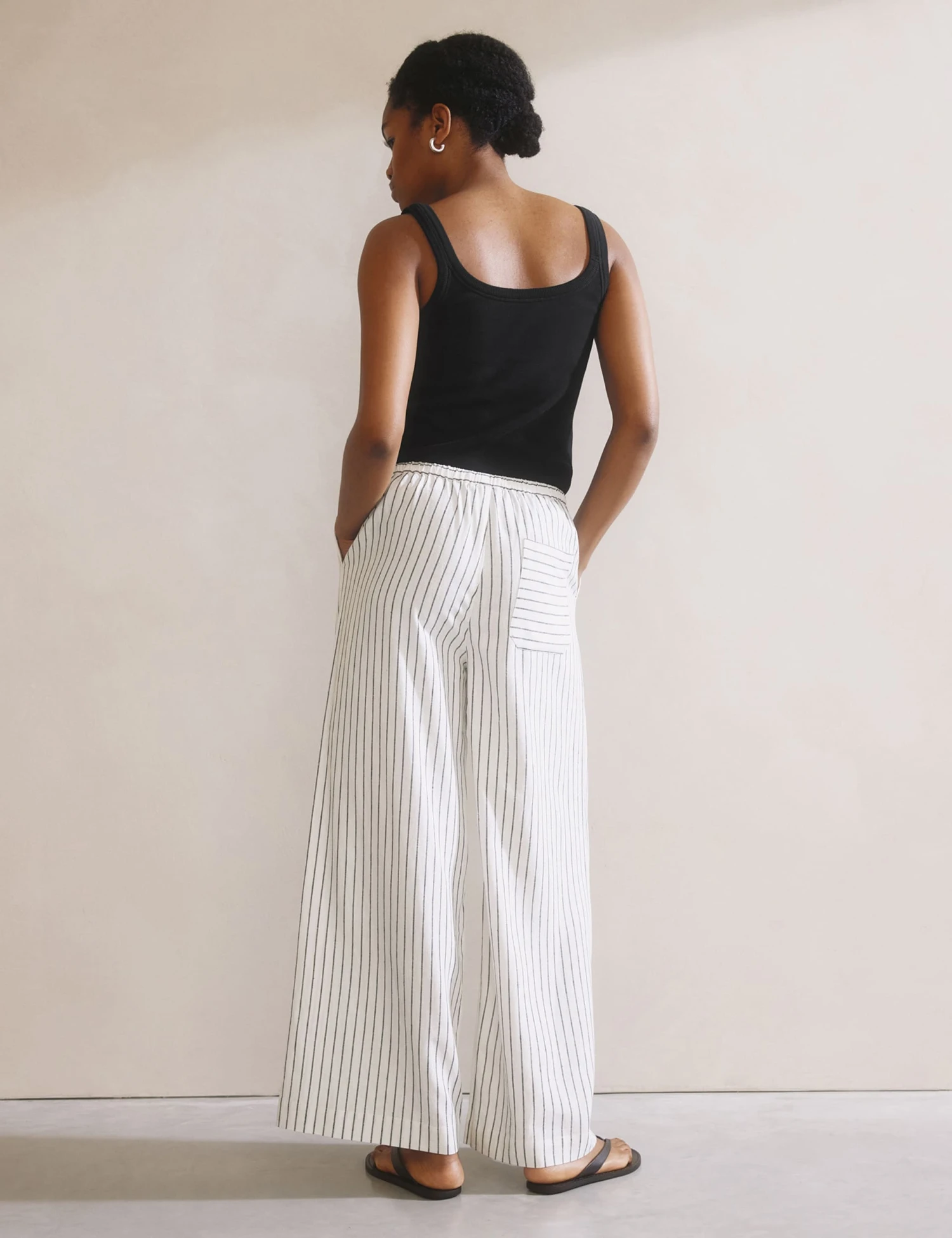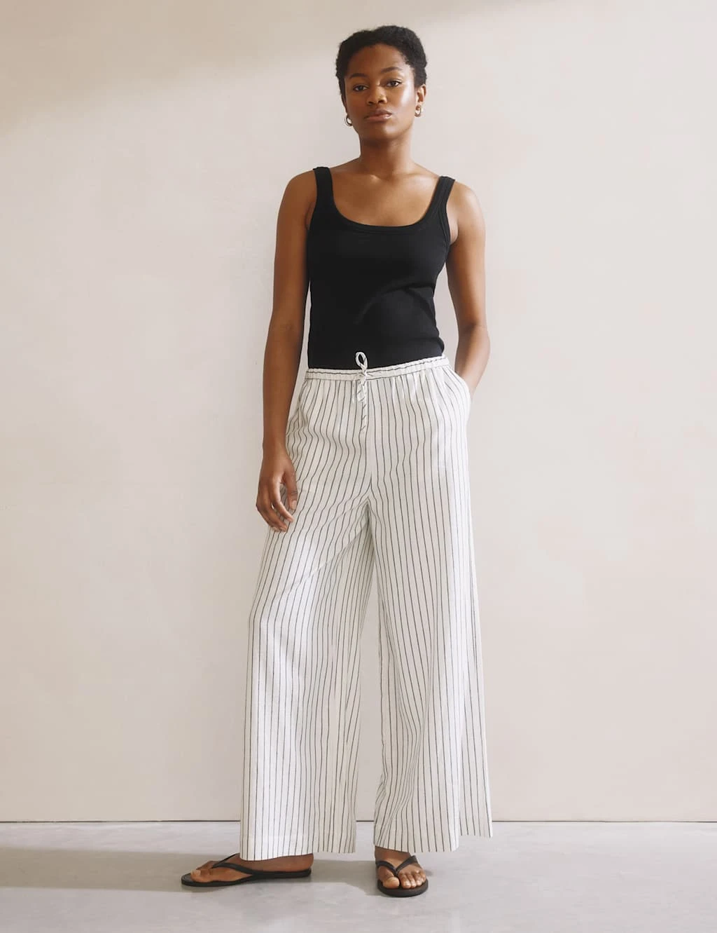 Breeze through your day in effortless style with these striped linen-blend trousers from Albaray. Stylish wide leg shape, with an adjustable drawcord at the waistline. Pockets at the hips provide useful storage.