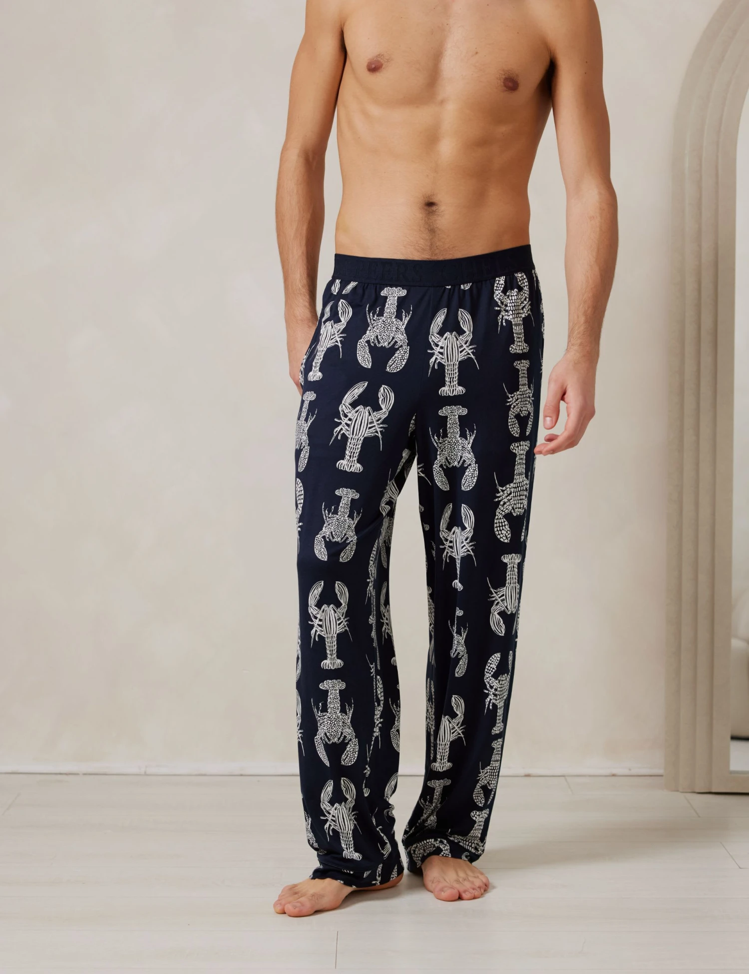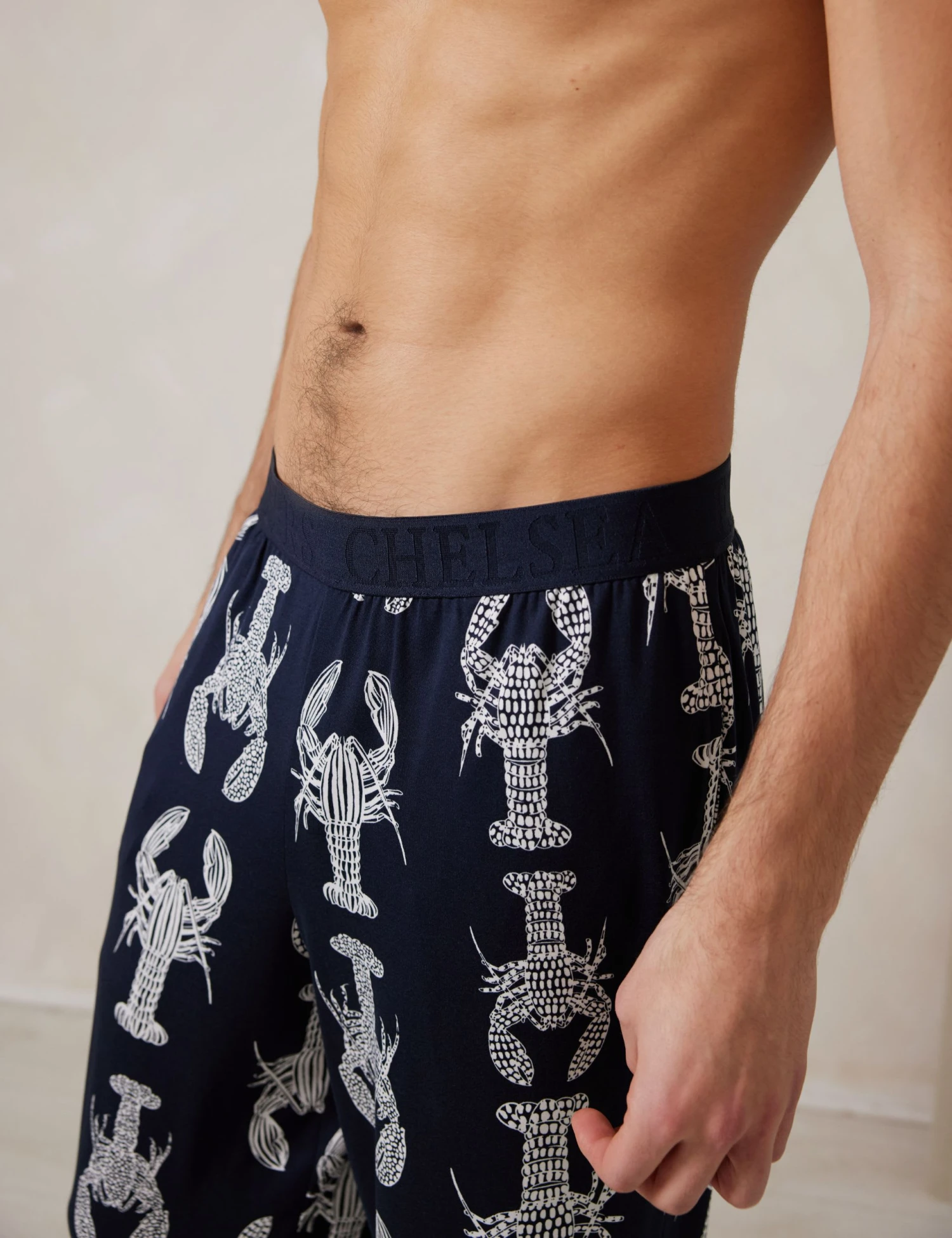 Bring a fun vibe to your downtime with these lobster-print pyjama bottoms from Chelsea Peers. This full-length pair is designed in a regular fit, with a comfy elasticated waist. Side pockets add a practical touch