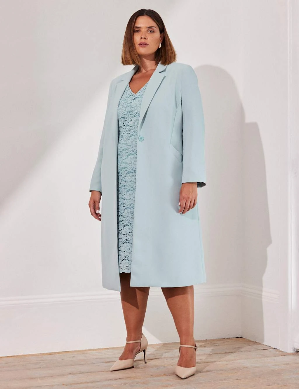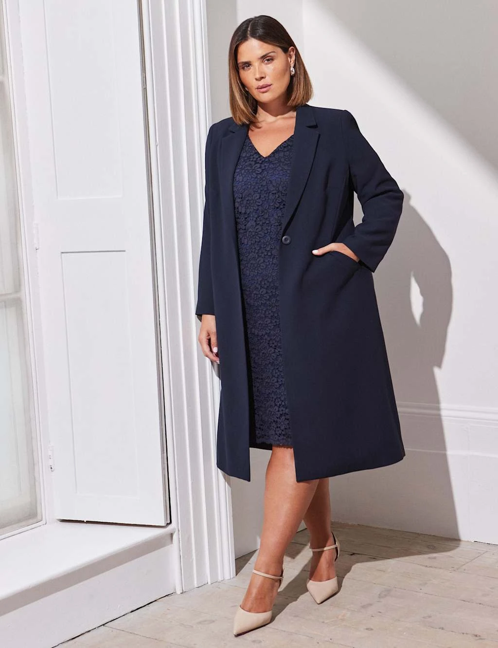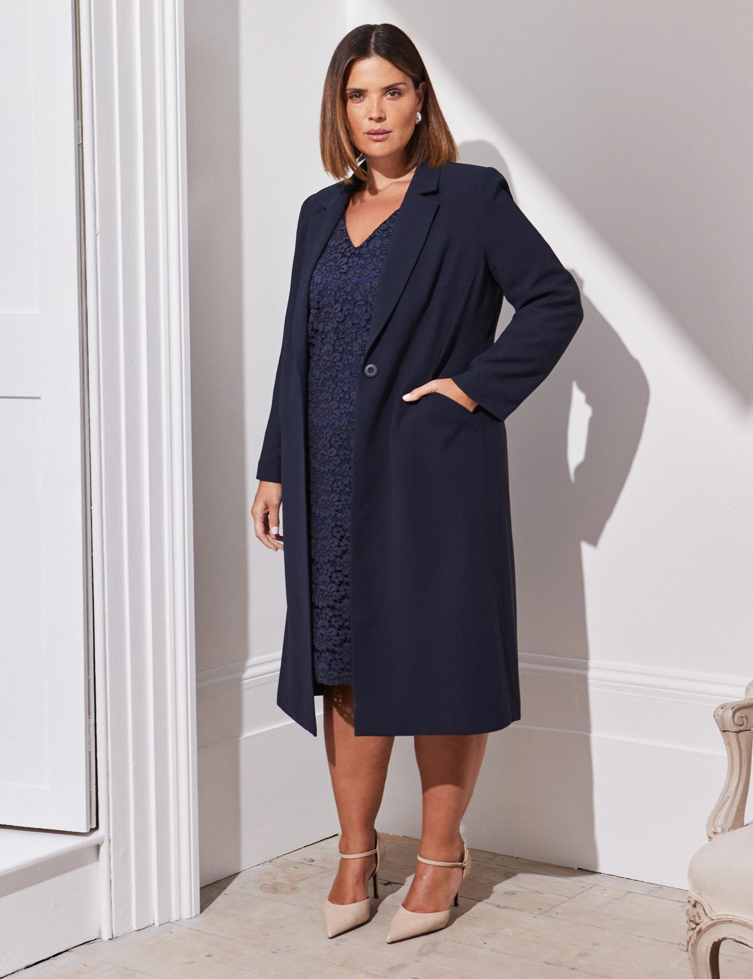 Create a sophisticated silhouette with this tailored jacket by Live Unlimited London. It’s designed in a regular fit with a smart lapel collar and a flattering longline shape. This versatile piece is complete with handy side pockets.