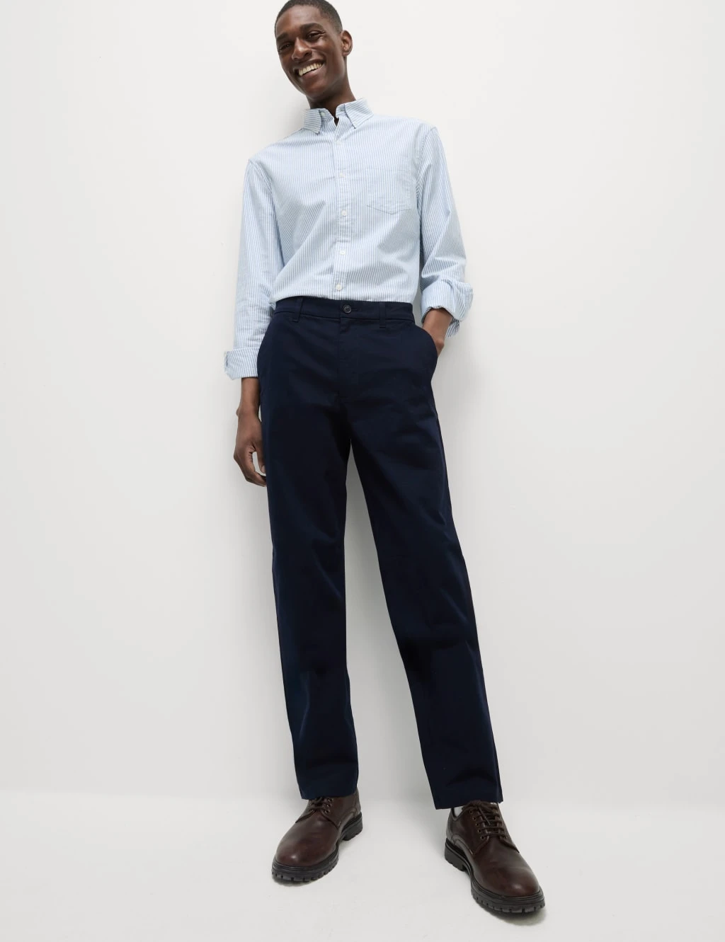 Combine comfort with style in these versatile cotton-rich chinos. Loose fit with added stretch for flexibility. Plus, they come complete with heat-fused Buttonsafe™ buttons that won’t fall off. We only ever use responsibly sourced cotton for our clothes.