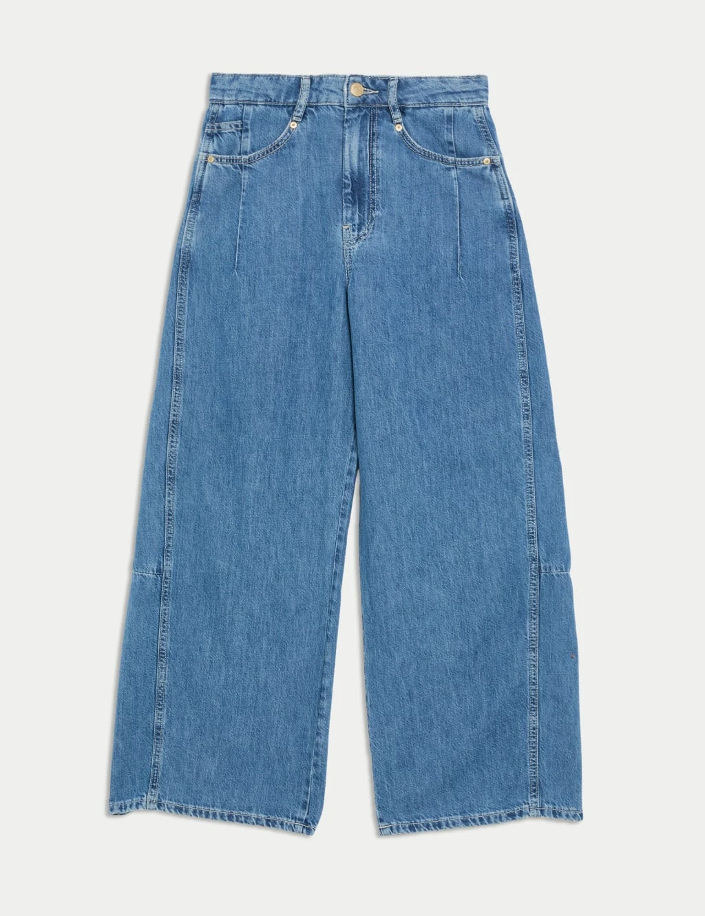 These on-trend jeans from our Autograph collection are crafted from a blend of comfortable cotton and smooth lyocell™ for a soft and breathable feel against the skin. They have a classic barrel leg and a flattering high waist which the crisp straight-line pleats help to enhance. The timeless five-pocket design is complemented by traditional rivet detailing and an embossed button. Autograph: premium investment pieces featuring contemporary cuts and refined finishing touches.