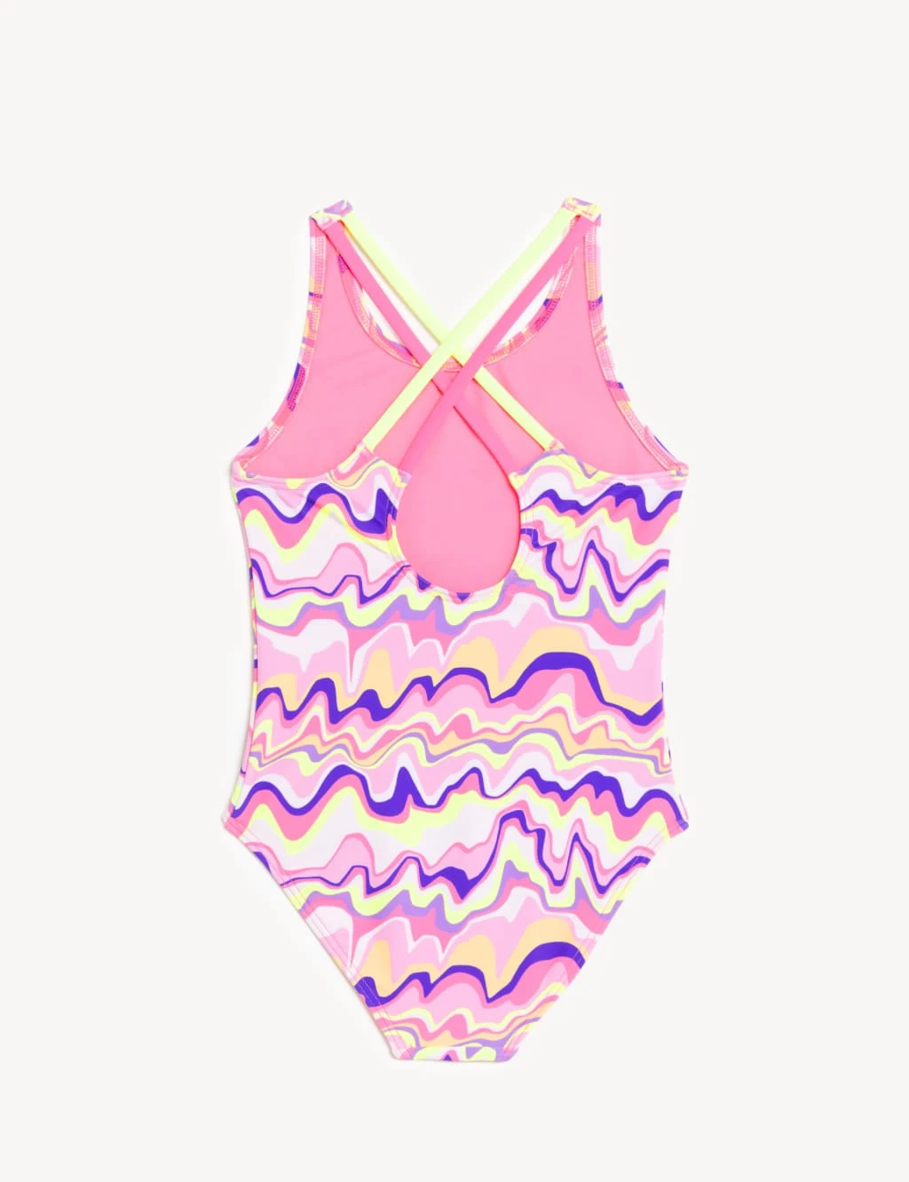 Get them ready for splashing in the sun with this swimsuit featuring a fun marble print. Easy regular fit with added stretch for all-day comfort. Built to last with chlorine-resistant fabric. Made from UPF 50+ Sun Smart fabric endorsed by the British Skin Foundation to help protect them from harmful UV rays.