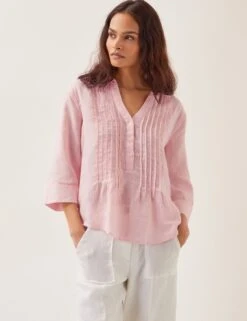 This breathable pure linen blouse from Monsoon makes a cool addition to your warm-weather wardrobe. It’s cut in a comfy regular fit, with wide three-quarter length sleeves and a neat collared neckline. Pleating and buttons down the front add dainty details.