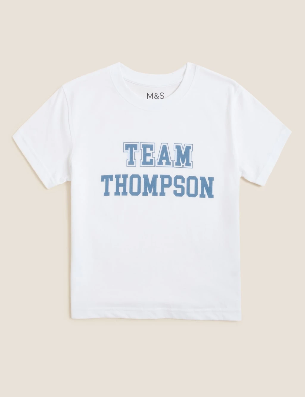 Let everyone know what team your kids are on with this pure cotton unisex t-shirt, personalised with their surname in blue lettering. This comfy style features our StayNew™ technology to keep it looking good as new, wash after wash. It’s also stain-resistant for protection against spills. Kit out your whole clan with the matching bodysuit for young ones, and t-shirt for dad.