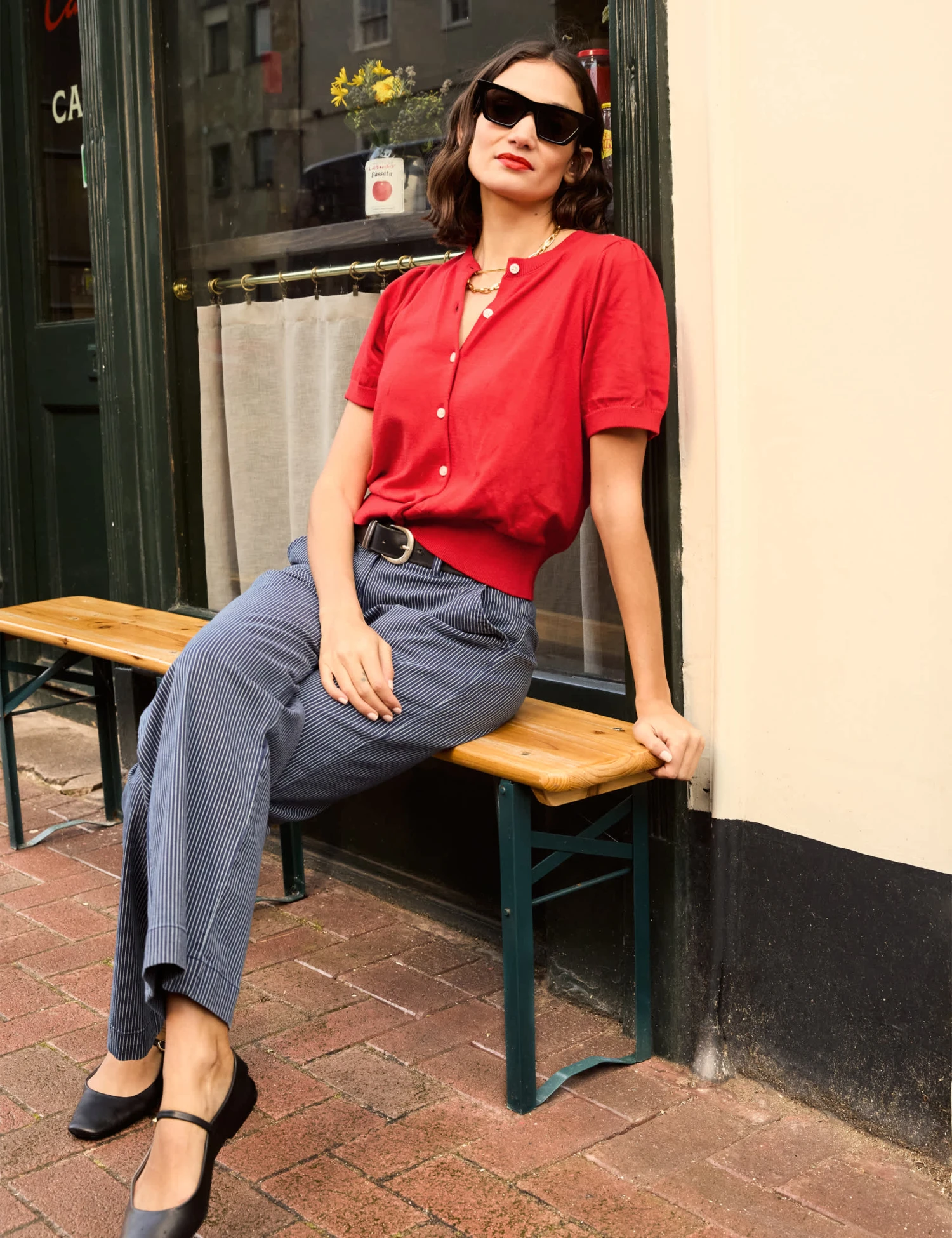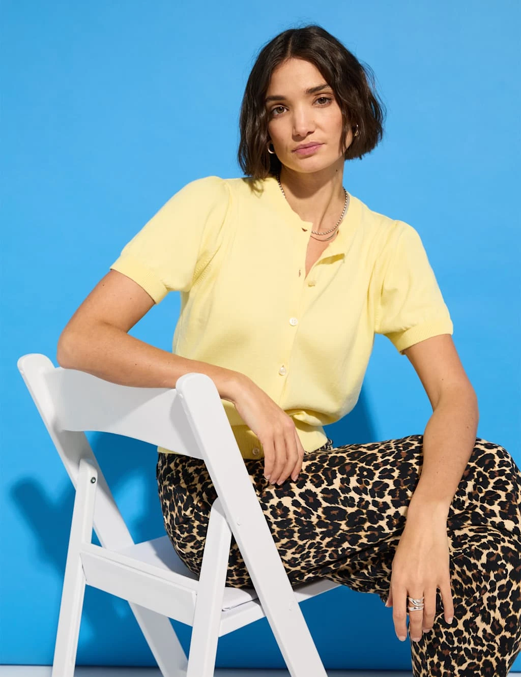 This pure cotton cardigan by Baukjen is the perfect layering piece for warmer days. It’s designed in a regular fit, with short sleeves and a crew neckline. The piece is complete with neat ribbed trims and contrast button fastenings down the front.