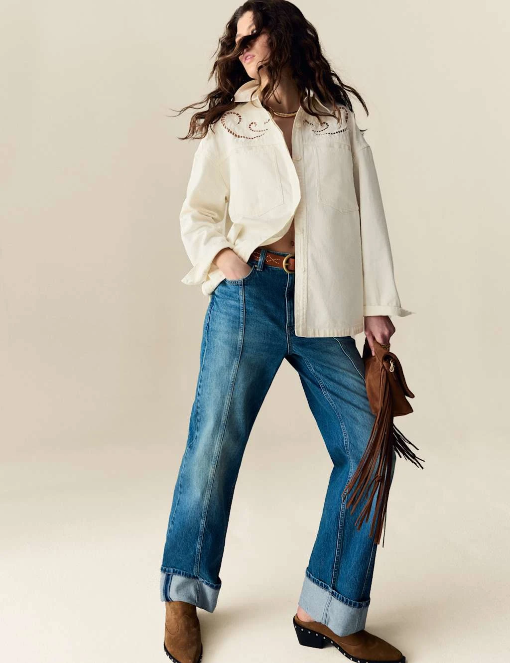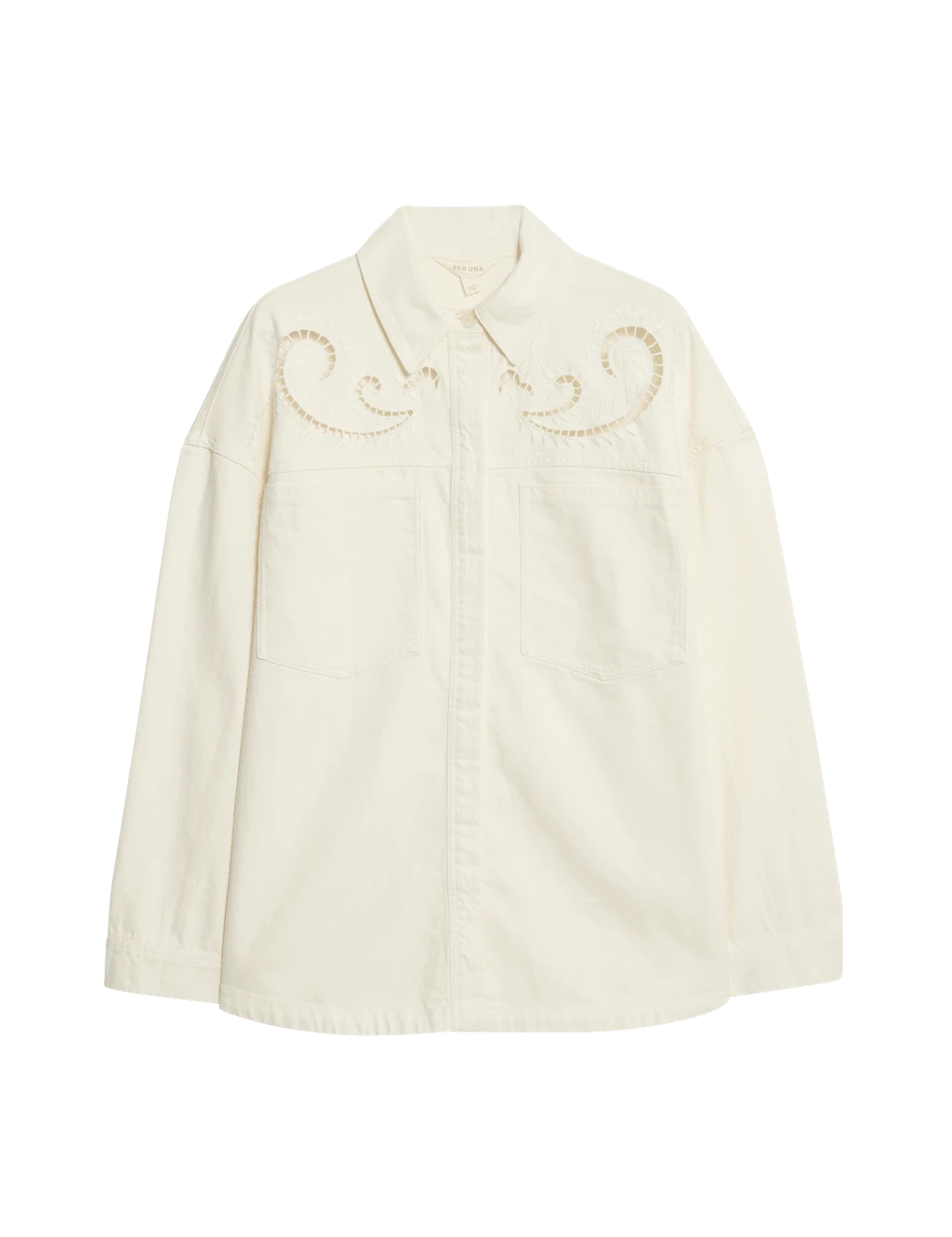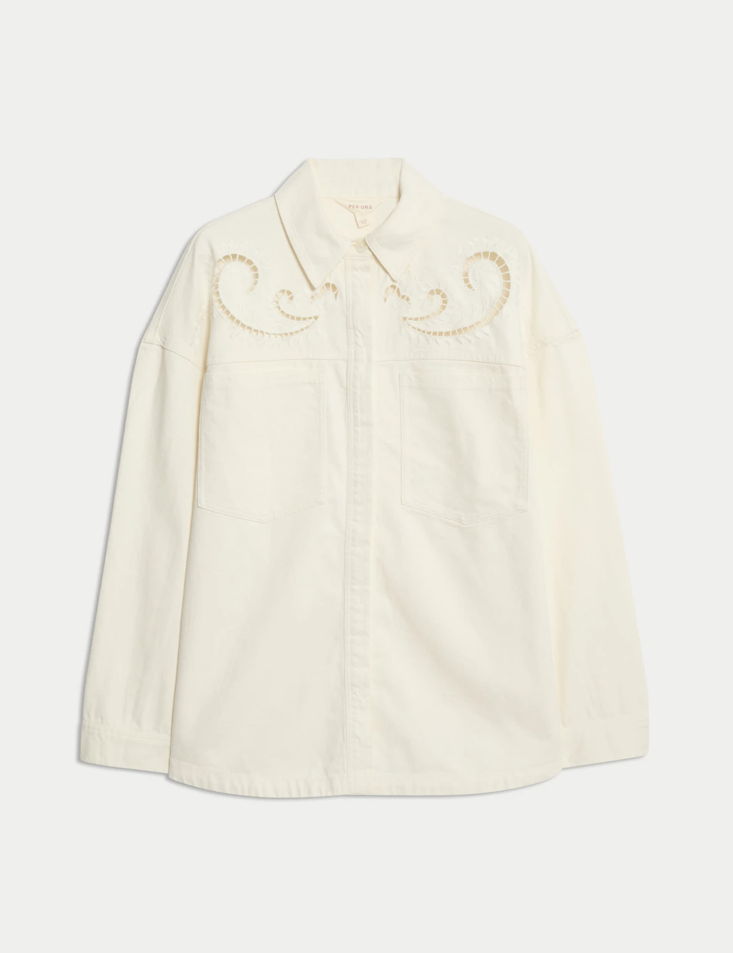 Tap into the Western trend with this pure cotton denim shirt from our Per Una collection. It’s cut in a comfortable regular fit, with unique cutwork detailing on each shoulder and a traditional collared neckline. The concealed button-through fastening and curved hem ensure a premium look. An authentic chest pocket completes this chic design. Per Una: stylish designs crafted with carefully considered details and feminine flourishes.