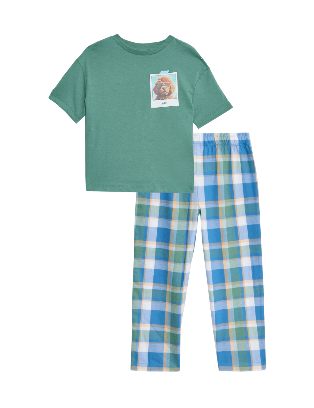 These pure cotton pyjamas are perfect for dog lovers. The set comprises a t-shirt with a Polaroid-style dog print and checked bottoms, both cut in a comfy regular fit.