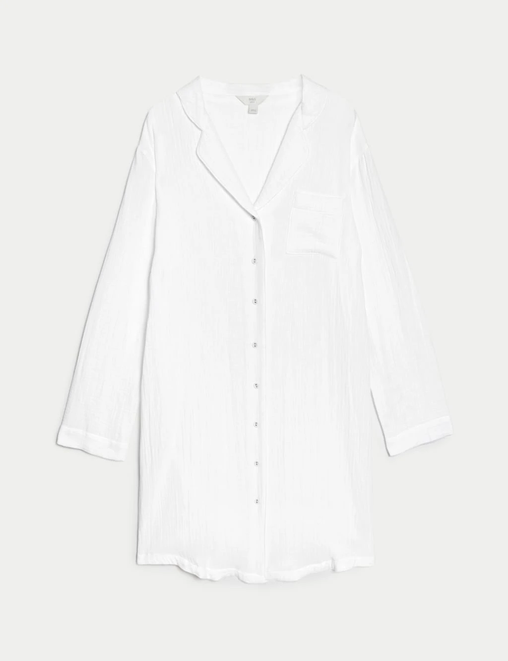 Enjoy the soft, breezy feel of this pure cotton muslin nightdress. It comes in an easy regular fit, with an open collar neckline and button-through front. Long, uncuffed sleeves add to its laid-back feel. We only ever use responsibly sourced cotton for our clothes.