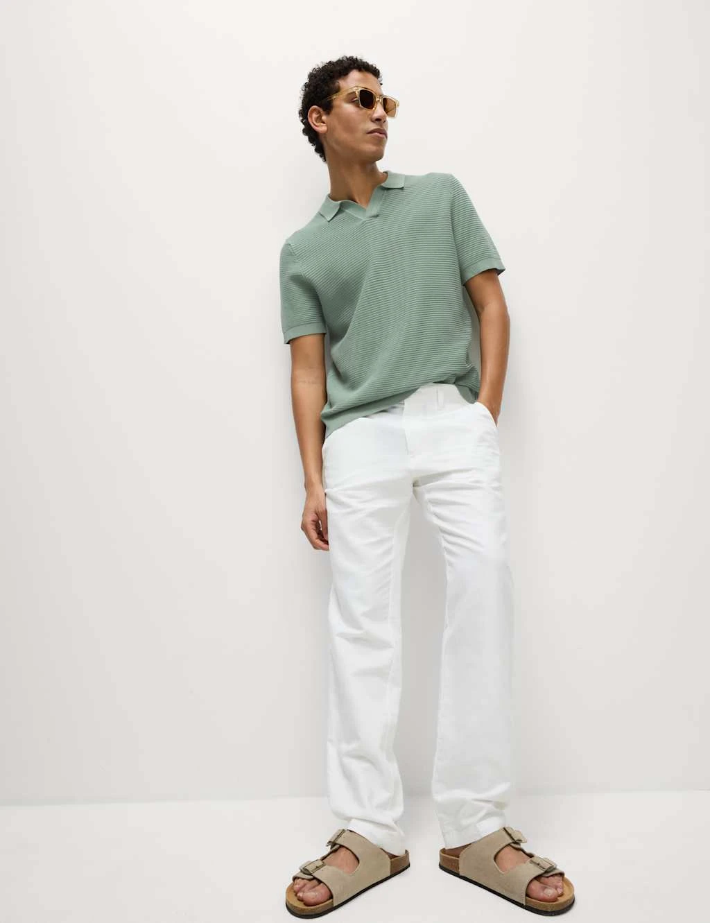 With its on-trend open neck, this knitted polo shirt looks cool and casual. It’s made from pure cotton for softness and breathability. The textured weave and garment dyed fabric enhances its rich colour and gives it a lived-in look. The ribbed trims fit snugly. M&S Collection: easy-to-wear wardrobe staples that combine classic and contemporary styles.
