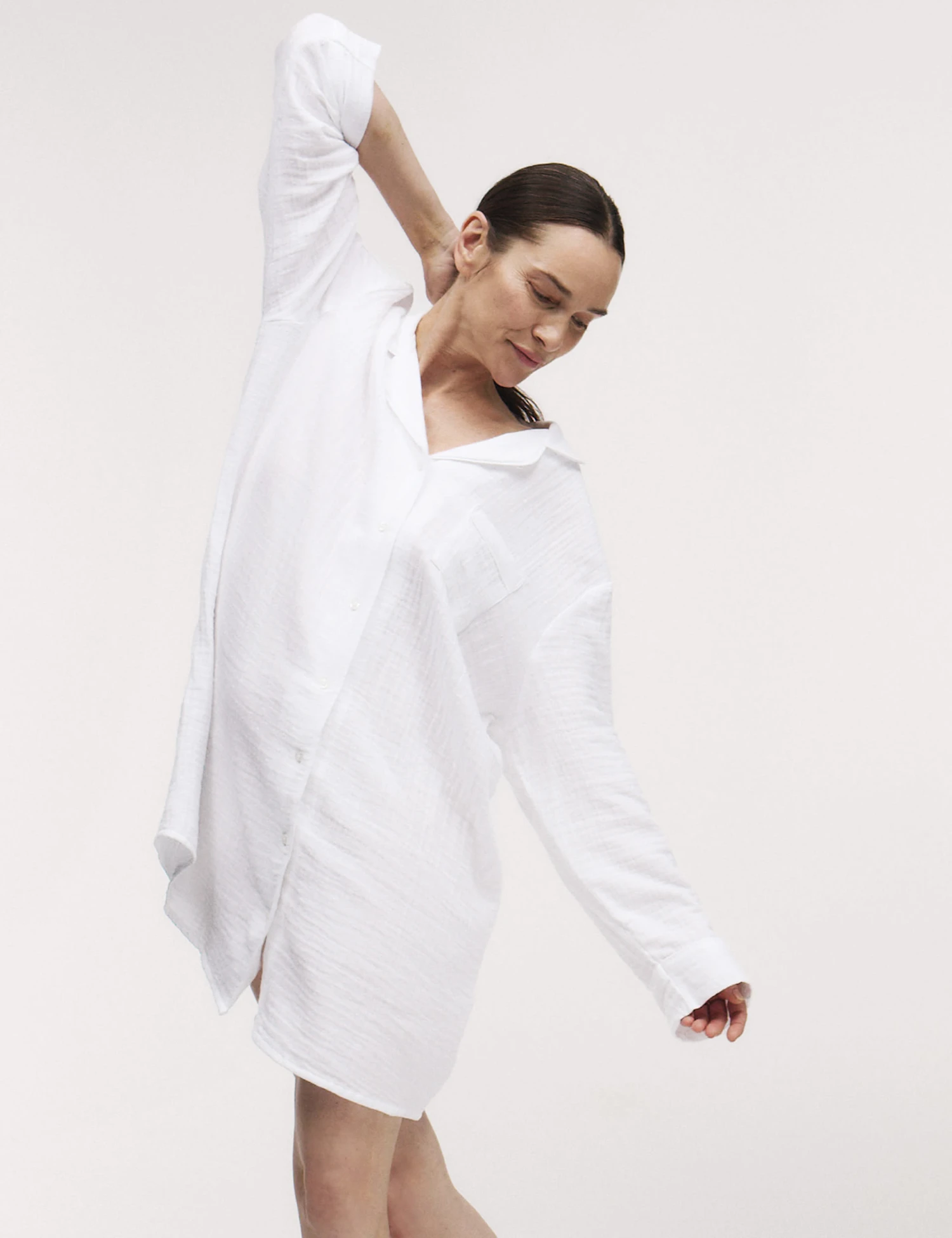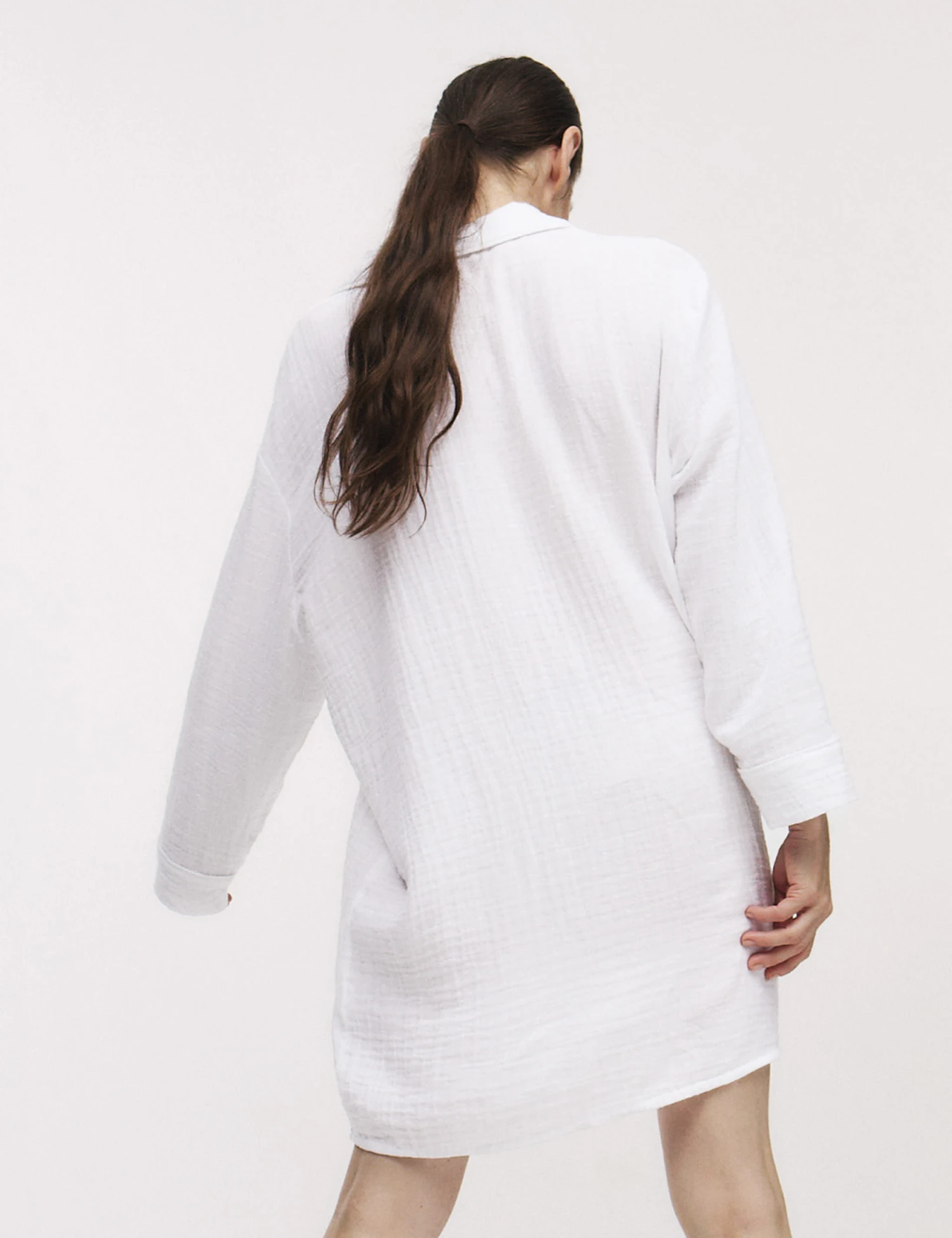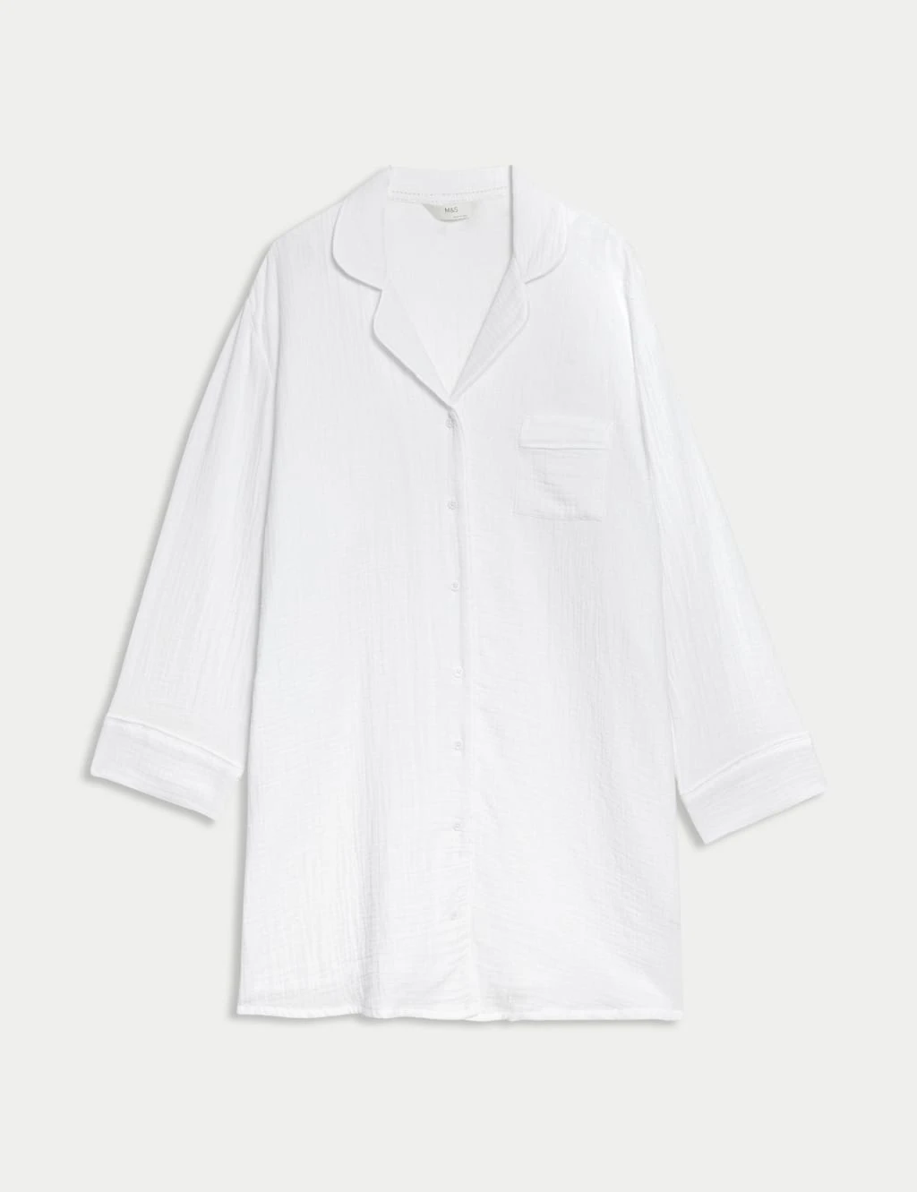 Slip into laid-back comfort with this pure cotton nightshirt. Made to an easy regular fit, with relaxed dropped shoulders and airy long sleeves. The open collar neckline leads to a row of button fastenings down the front. Crafted from light muslin fabric with a dobby texture for a cool and breathable feel on warm nights. M&S Collection: versatile styles in modern shapes with unique and playful details.