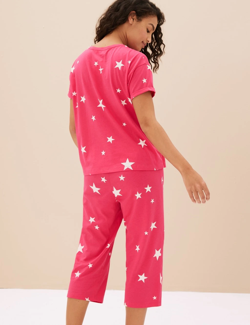 With their dreamy star print, these pure cotton pyjamas are made for sweet dreams. Easy regular fit, with short sleeves and cropped bottoms. An elasticated waistband ensures effortless comfort.