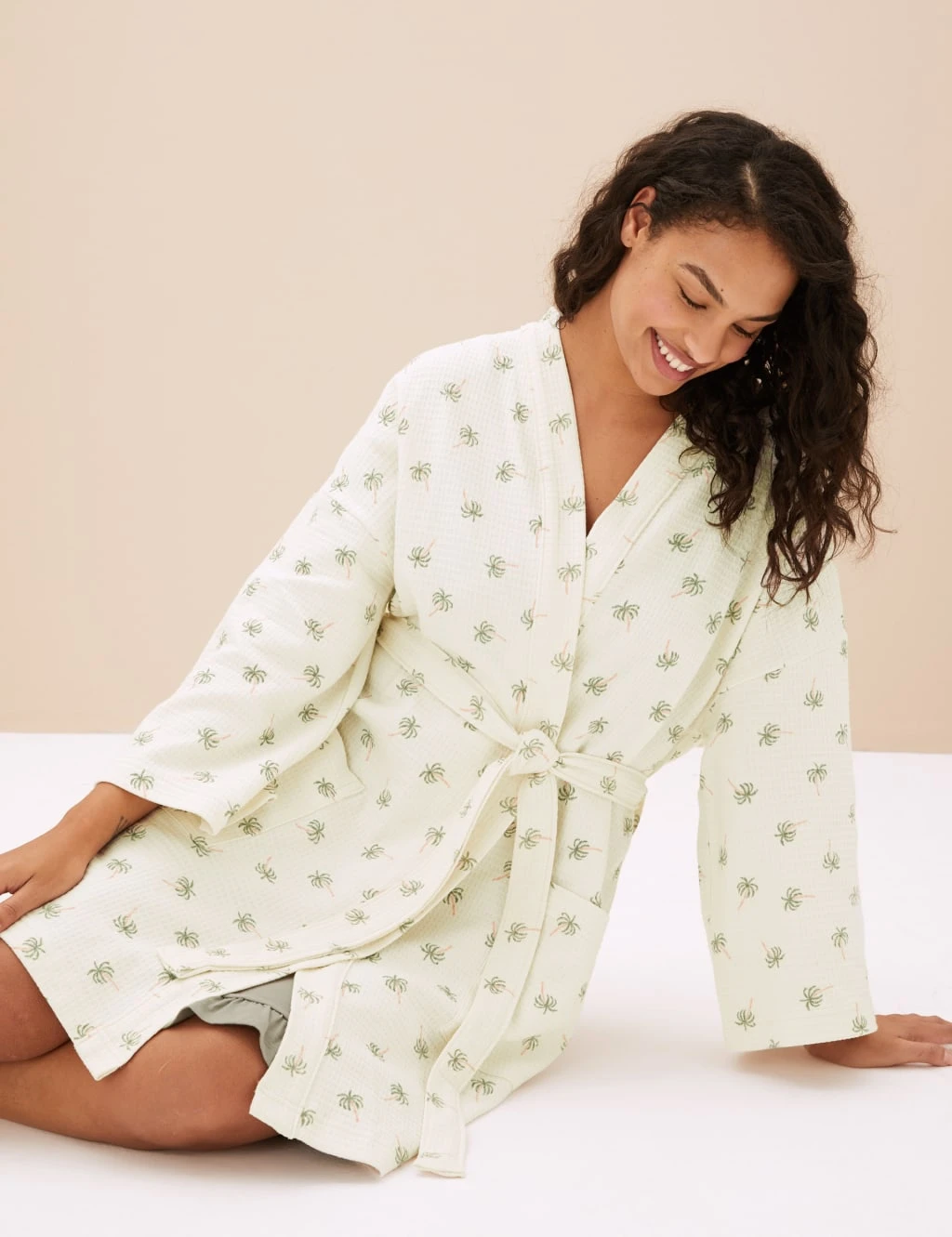 All-over palms and breezy pure cotton make this dressing gown perfect for the warmer months. Comfy regular fit, with a tie fastening and long sleeves. A waffle weave gives the fabric a soft and absorbent quality. Complete with a knee-length cut and two large side pockets. Ideal for gift-giving, it comes neatly flat-packed. M&S Collection: versatile styles in modern shapes with unique and playful details.