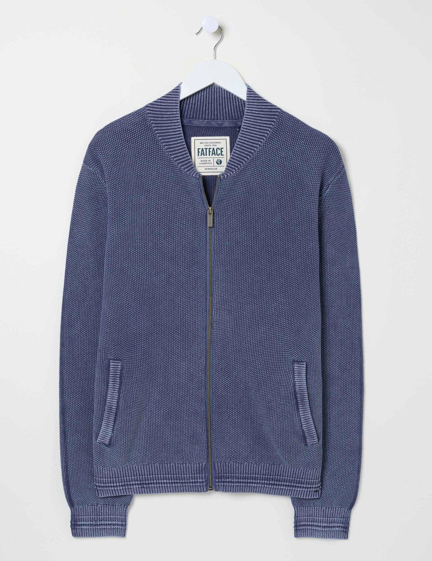 This knitted bomber from FatFace is a laid-back take on a classic cardigan. It’s made from breathable pure cotton with a stylish textured knit and an authentic washed finish. The zip-through design allows for versatile wear, while the rib-knit collar, cuffs and hem add a touch of structure. Two side pockets complete the timeless look.