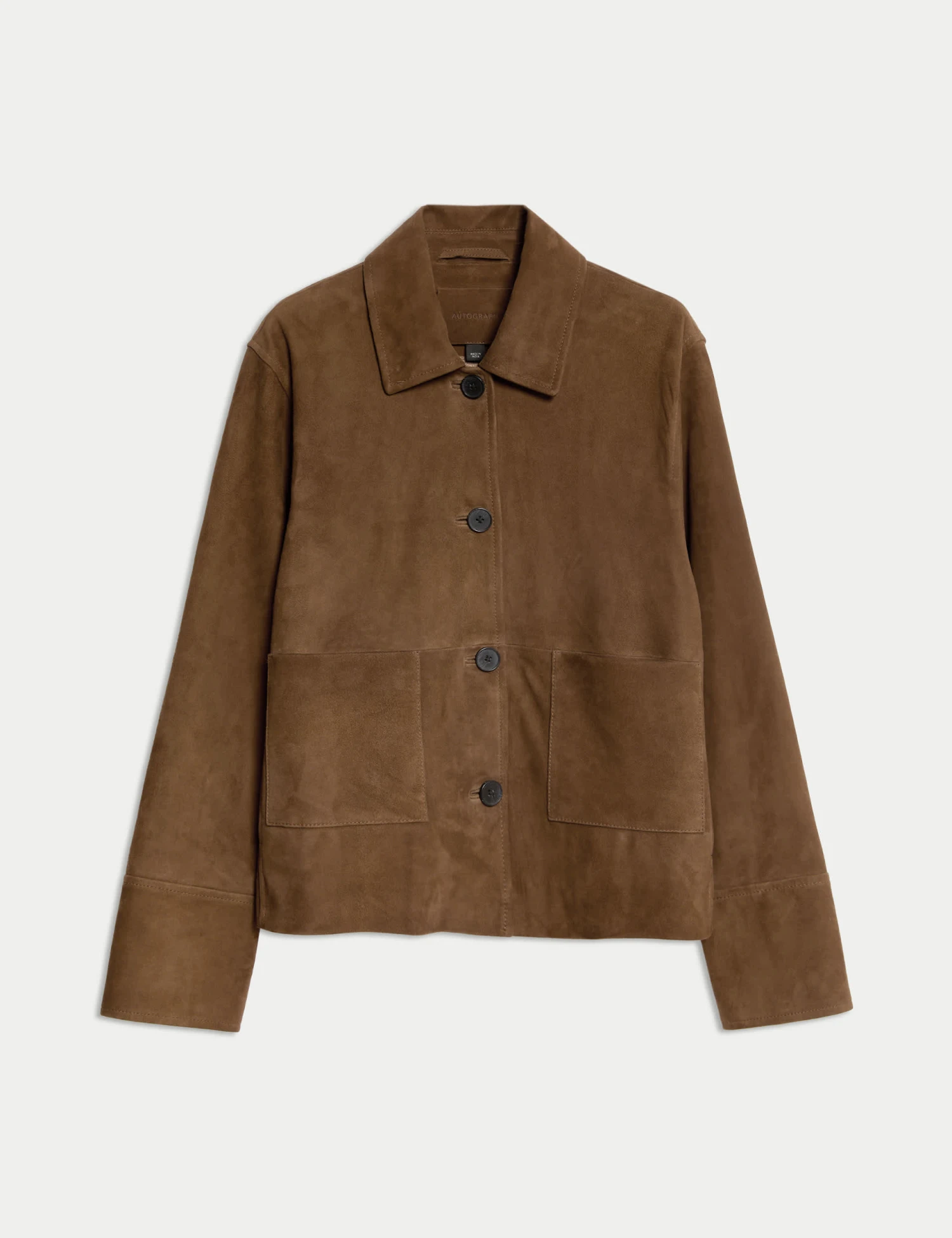 Give your outerwear a luxe upgrade with this Autograph suede utility jacket. Cut in a regular fit, it features a collared neckline and button-through front for a timeless look. Chest patch pockets and welt pockets at the waist add a subtle utility touch with everyday practicality. Autograph: premium investment pieces featuring contemporary cuts and refined finishing touches.