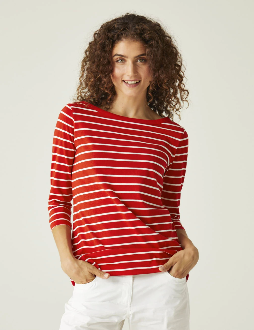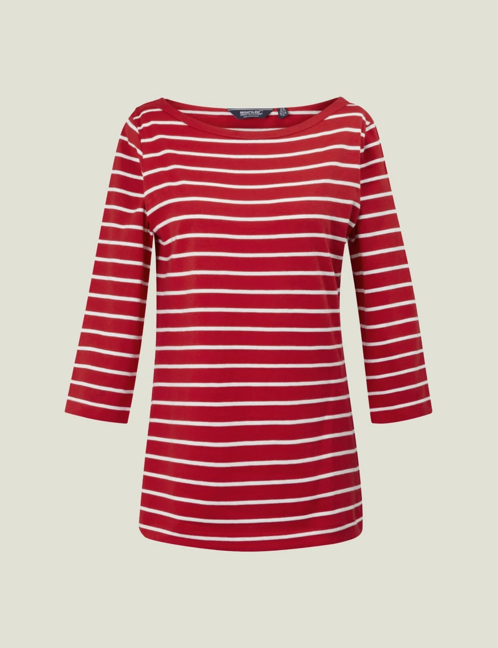 Add a classic to your wardrobe with this cotton-blend striped t-shirt from Regatta. It’s cut to a regular fit for throw-on-and-go style. The flattering 3/4 length sleeves feature the brand logo and have wider stripes for a fresh feel.