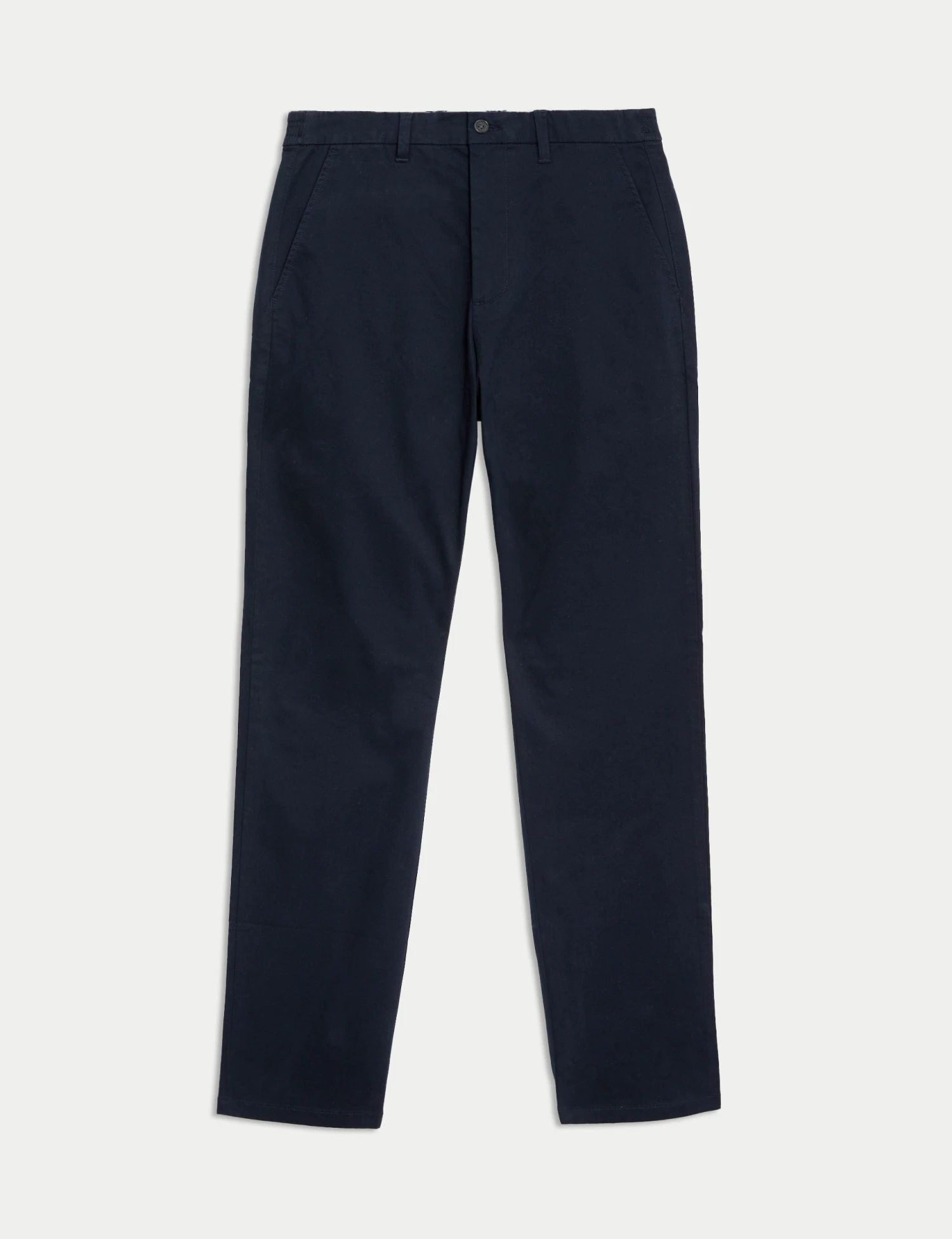 Look smart and feel great in these soft and breathable cotton-rich chinos. Made to a regular fit with a streamlined flat front. Added stretch in the fabric ensures easy movement and the elasticated waist provides extra comfort. Jetted side pockets and button-up back pockets keep your essentials secure. M&S Collection: easy-to-wear wardrobe staples that combine classic and contemporary styles.