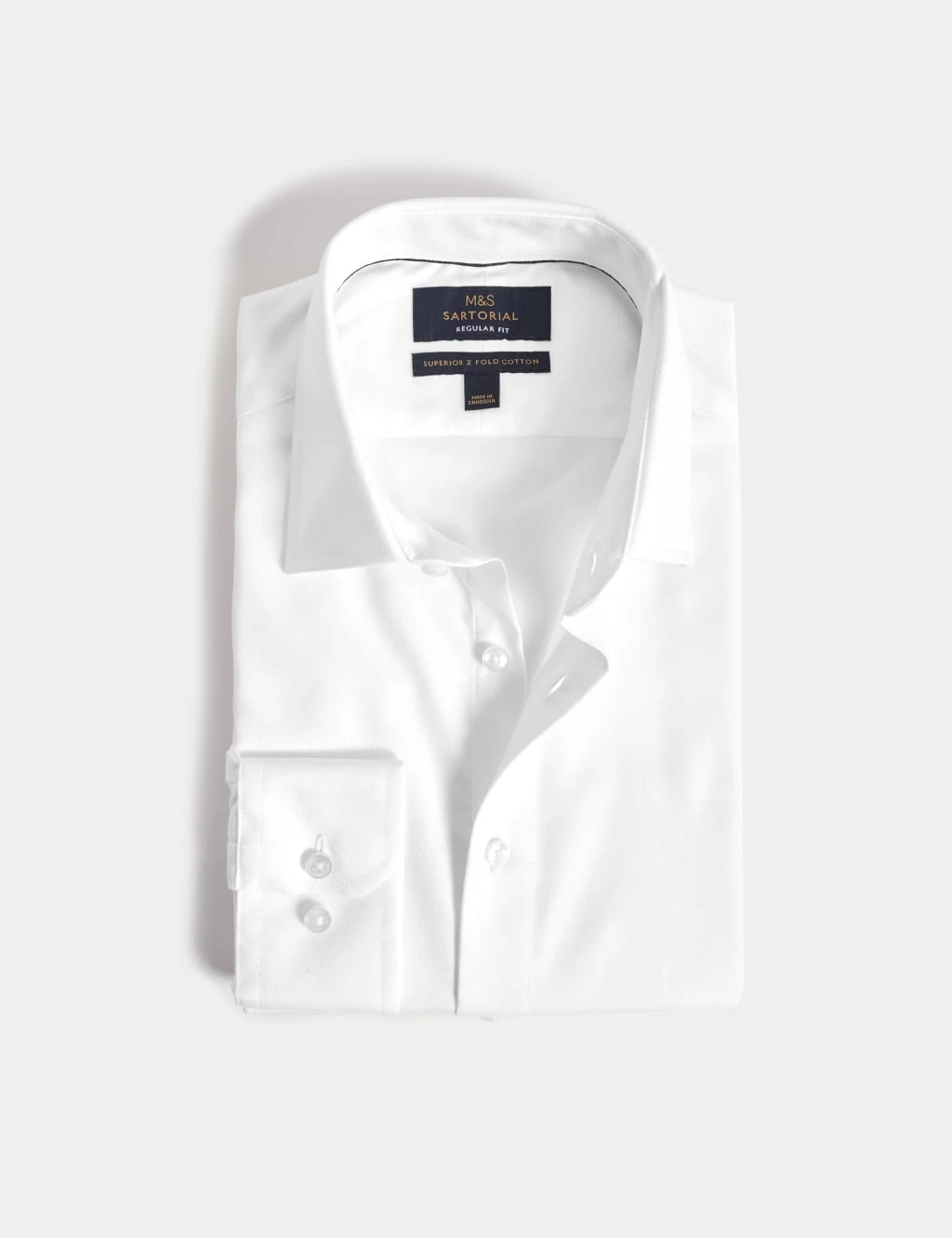 Woven from pure fine cotton twill, this premium M&S Sartorial shirt offers luxurious quality for formal professional settings or special occasions. The regular fit offers a smart silhouette that’s comfortable for all-day wear, while the classic collar and single cuffs maintain a classic appeal perfect for a dress shirt. Thoughtful details include a button-through fastening and a pleat at the back for enhanced movement and flexibility. The easy-to-iron finish ensures effortless maintenance with just a quick press.M&S Sartorial: Luxury tailoring inspired by Savile Row; fusing exceptional craftsmanship with superior fabrics.