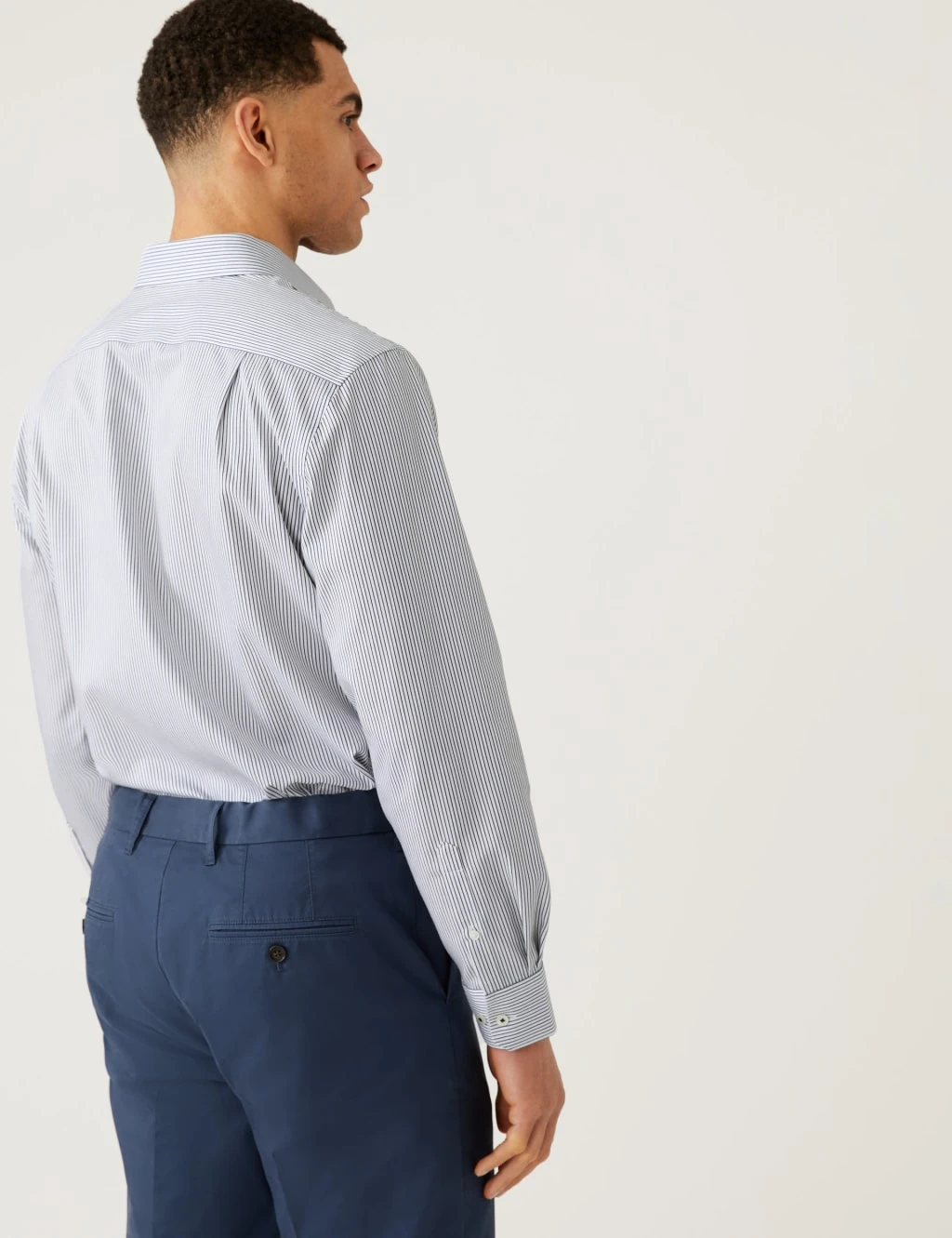 Update your officewear with this striped pure cotton shirt. It’s made in a comfy regular fit with a smart collared neck and long sleeves. The non-iron finish provides hassle-free laundering.