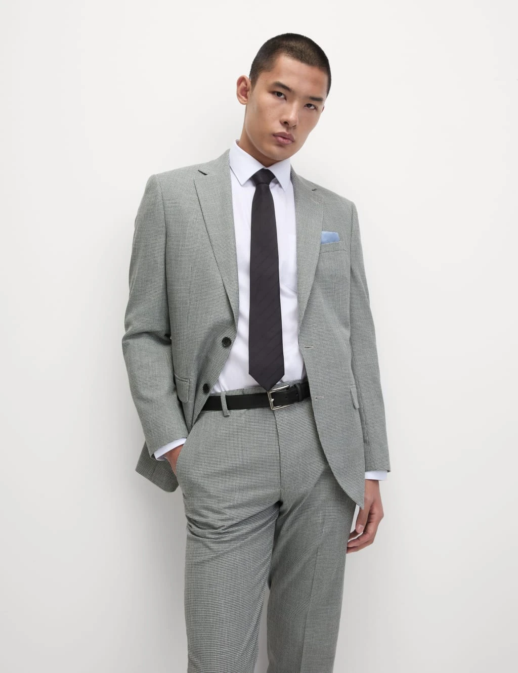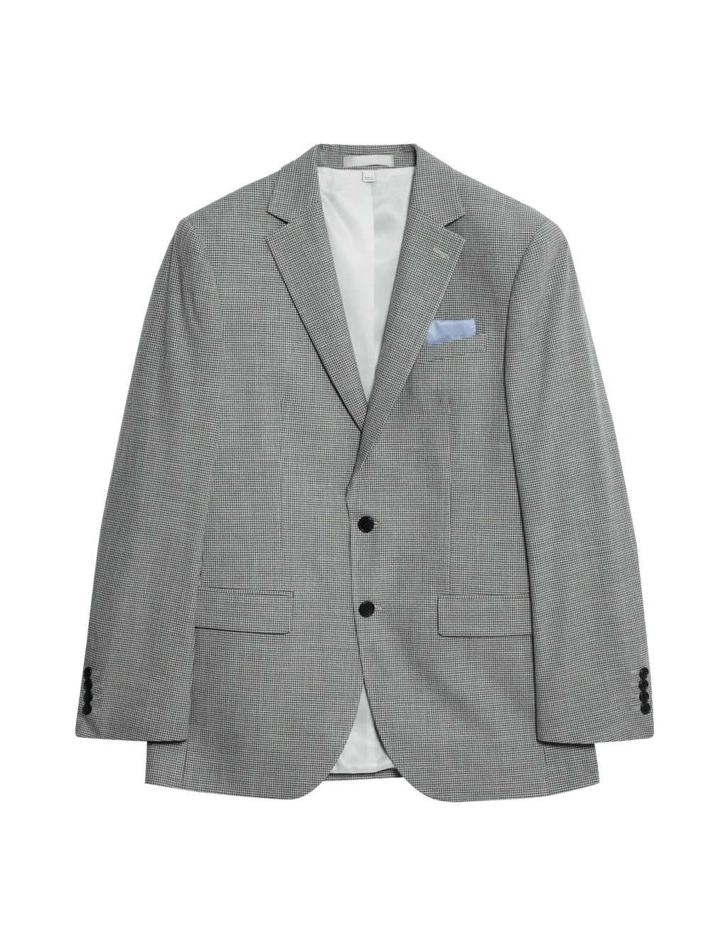 This suit jacket is crafted from textured melange fabric with a subtle puppytooth pattern for a timeless look. It’s cut to a regular fit in a single breasted style, with a neat notch lapel and two-button fastening. Two vents at the back ensure easy movement. Flap pockets keep your essentials handy, while a chest pocket gives a final smart touch. Matching trousers are available. M&S Collection: easy-to-wear wardrobe staples that combine classic and contemporary styles.