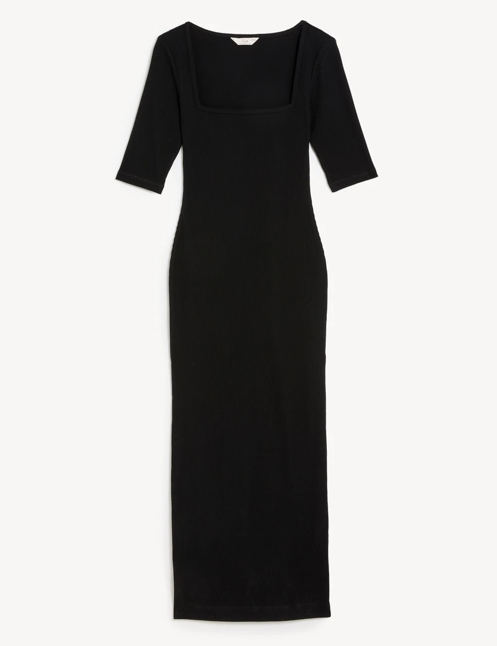 Versatile and sleek, this ribbed lounge dress from our Rosie HomeWear collection is designed with jersey and added stretch for incredible comfort. Flattering square neck design with short sleeves and a statement thigh-high split. Complete with exclusively designed signature rose gold hardware. Rosie HomeWear: contemporary loungewear pieces designed to be styled your way.