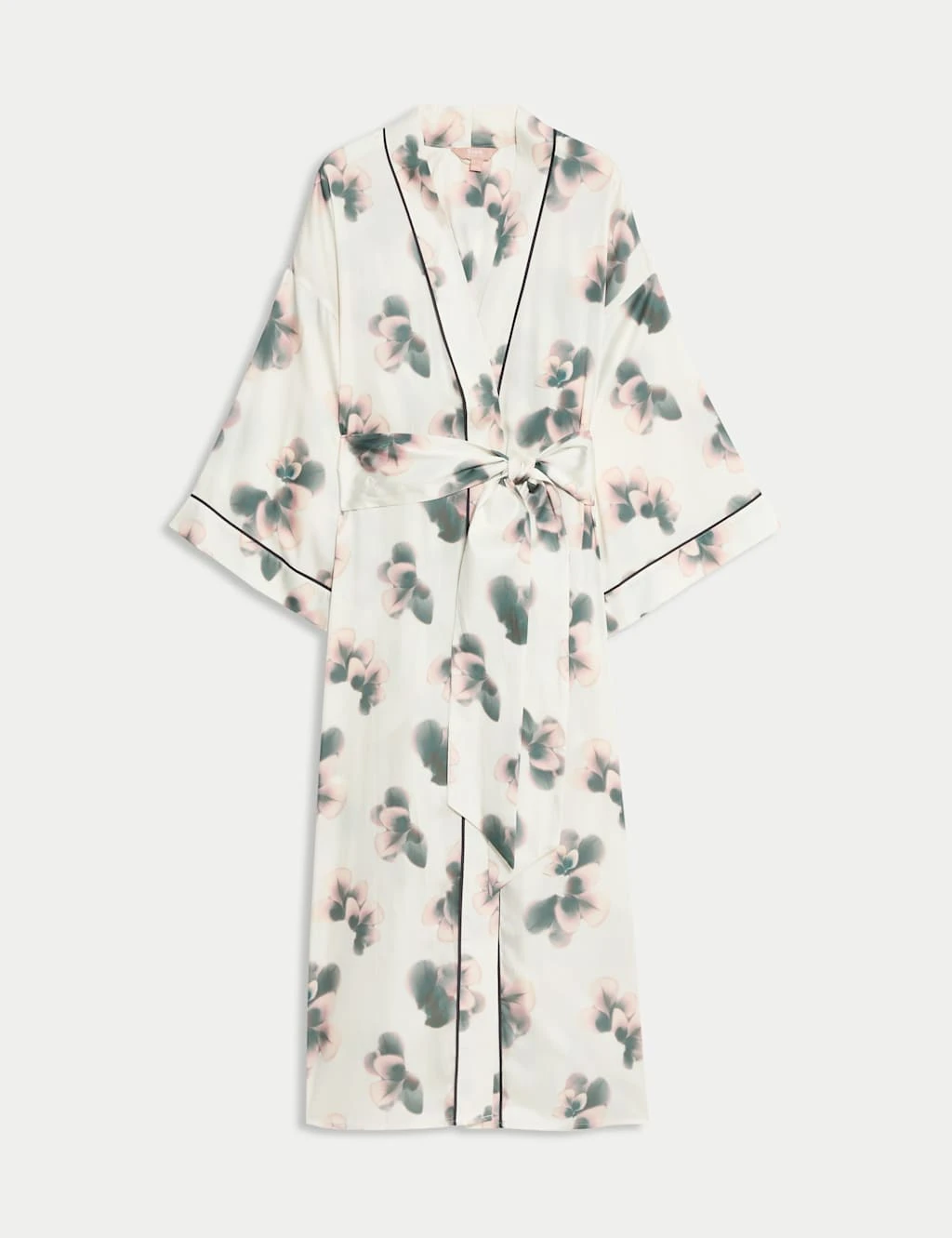 This Rosie Exclusively for M&S wrap is a luxurious layer to wear at home. It’s made from smooth satin floral fabric and cut to a regular fit, with a waist-enhancing tie belt. Wide long sleeves and a long length create an elegant silhouette while providing extra coverage. This luxe piece is detailed with tonal piping and two patch pockets on the front. Our clever Cling Resist™ technology dissipates static across the fabric surface, so it moves smoothly when you do. Rosie: contemporary, feminine silhouettes crafted from luxurious fabrics with intricate detailing.
