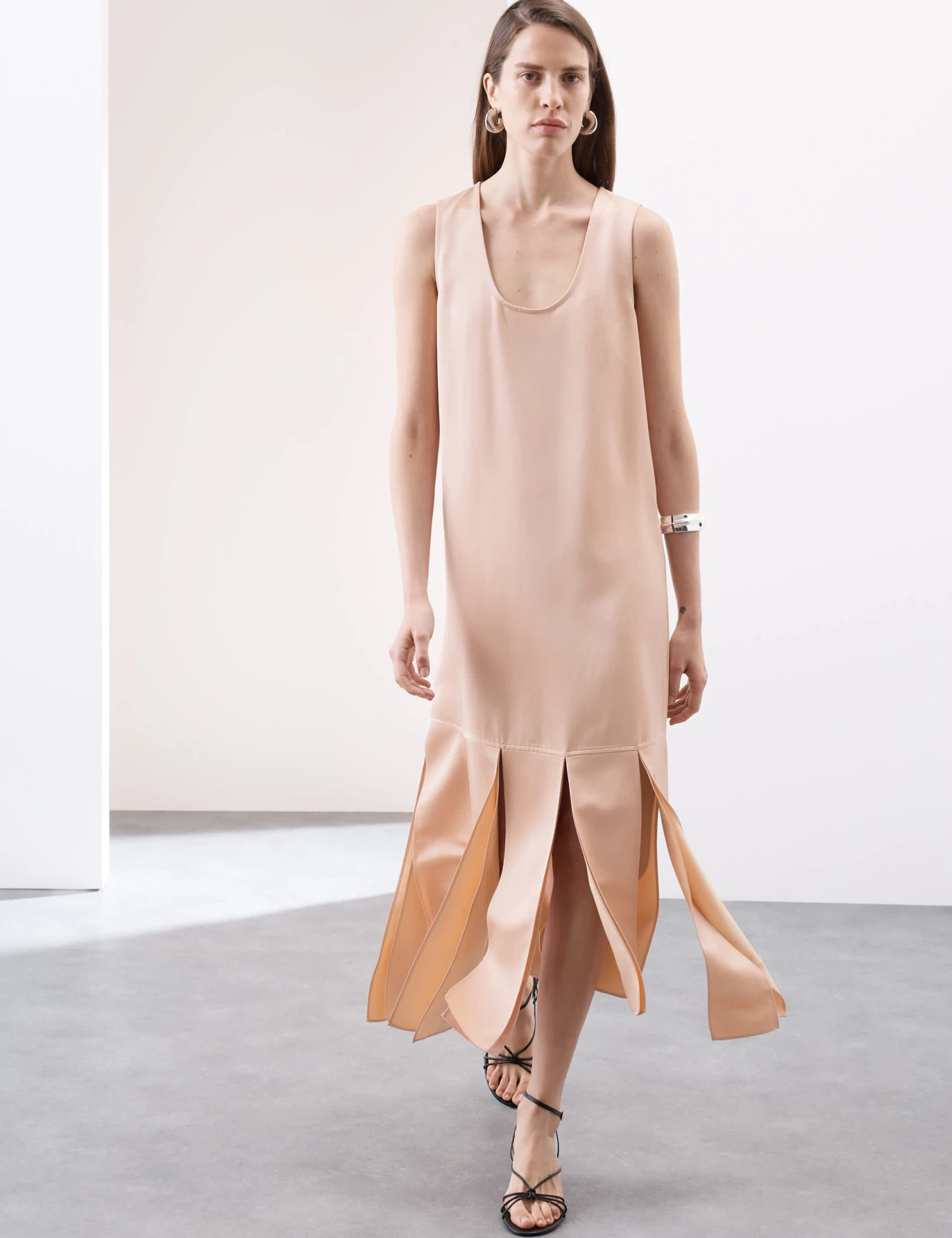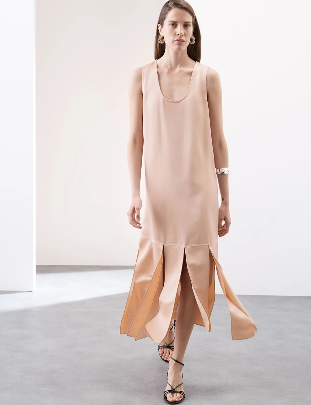 This sleeveless satin dress from our Autograph collection is a sophisticated choice for smart occasions. It’s cut in a regular fit, with a flattering fit-and-flare shape. A scoop neckline adds an elegant touch, while a midi-length tasseled hemline creates a playful look. Autograph: premium investment pieces featuring contemporary cuts and refined finishing touches.