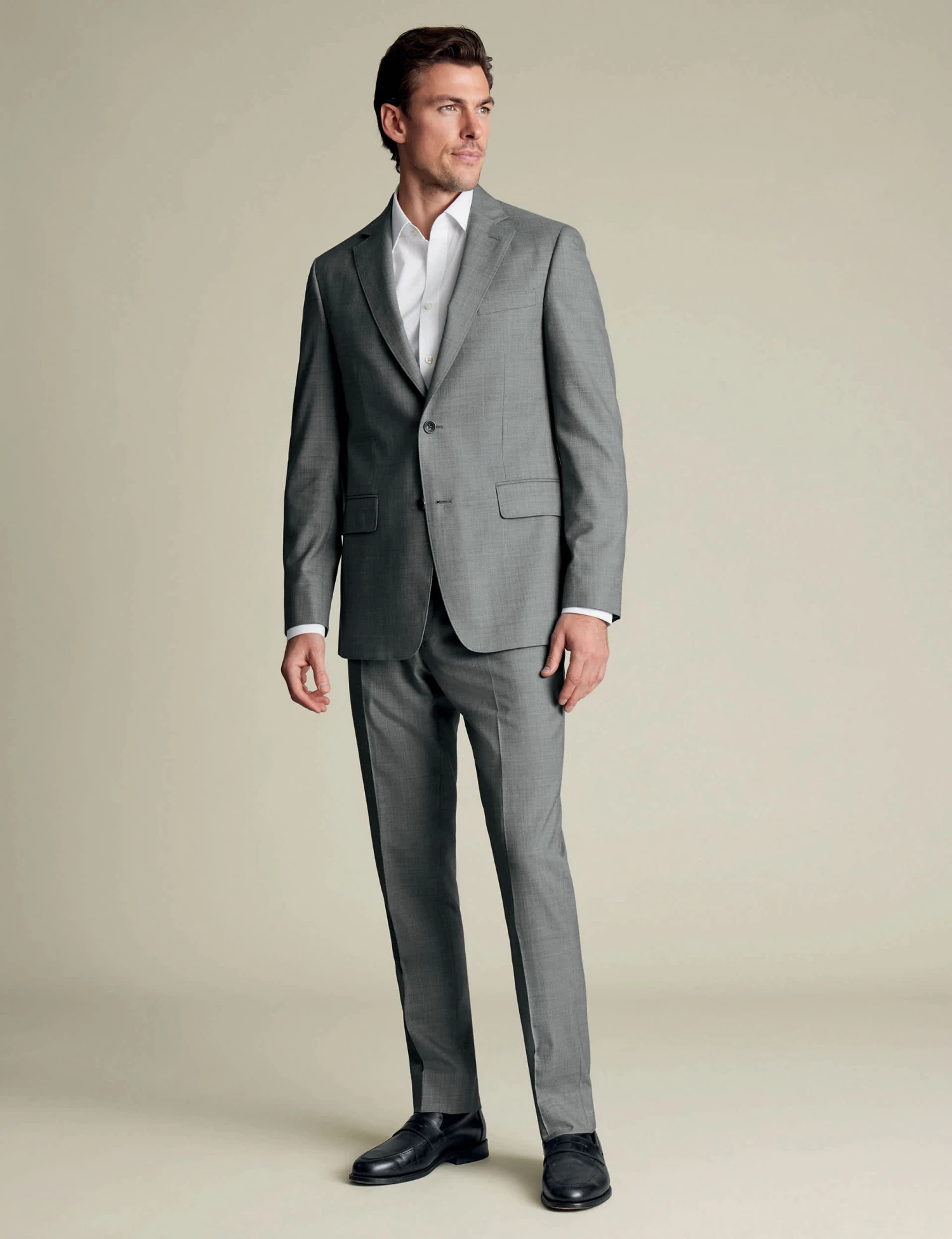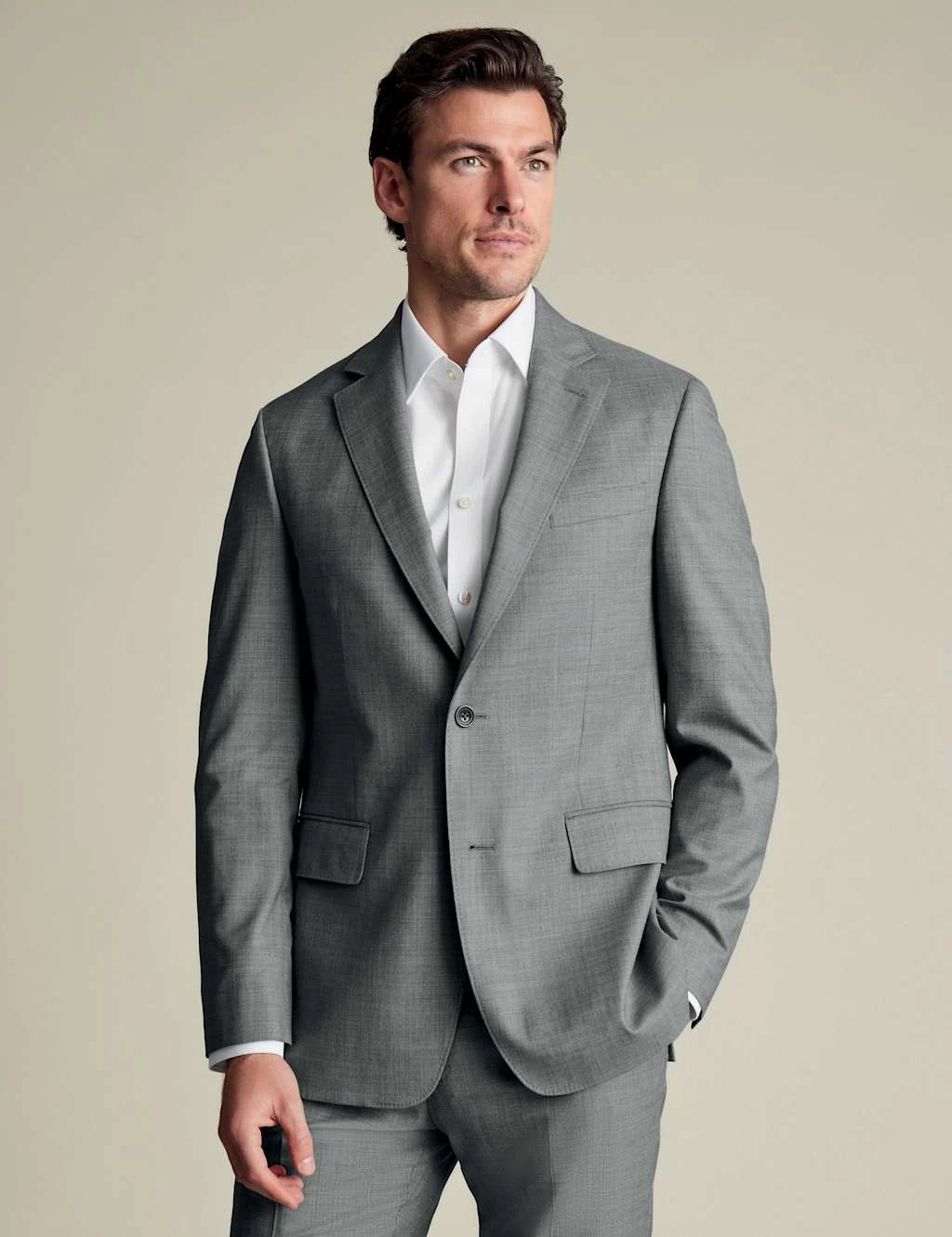 This single-breasted suit jacket from Charles Tyrwhitt is crafted from pure wool for a luxurious feel. It’s made in a slim fit for a contemporary look, with a double vent at the back for easy movement. Notched lapels and flap pockets at the waist provide timeless detailing, while natural stretch and crease recovery offer fabric performance features.