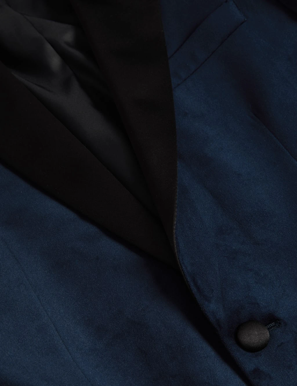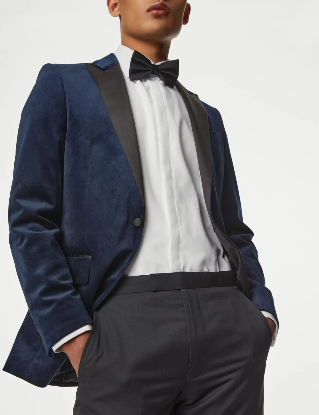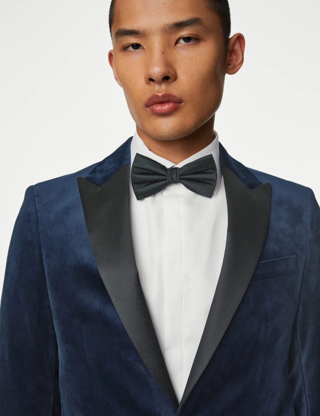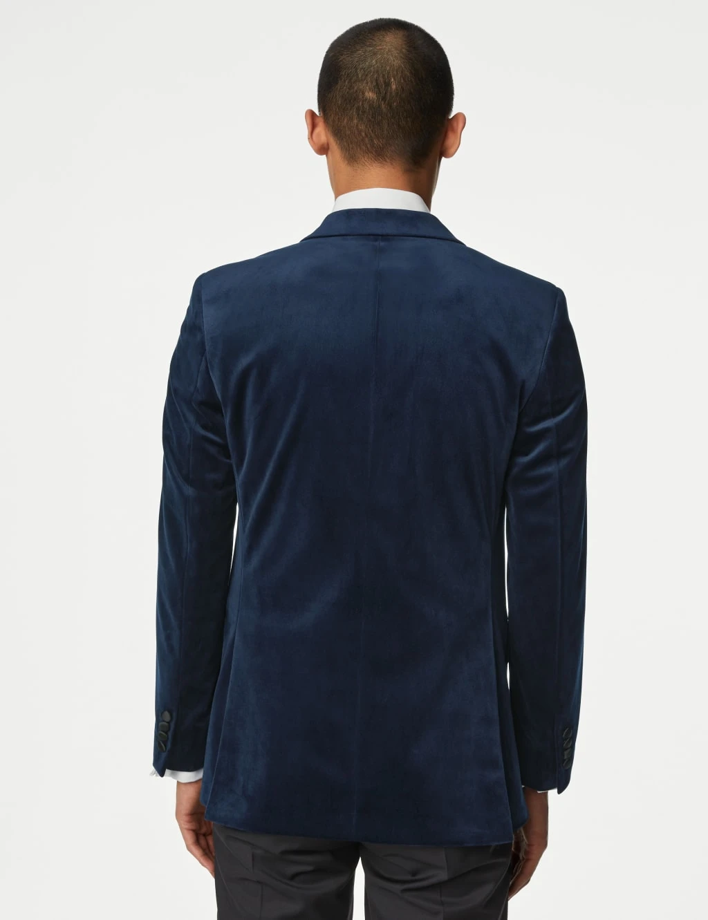 Add extra refinement to your evening attire with this smart velvet jacket. It’s cut to a neat slim fit in a classic single breasted design, with two flap pockets and one jetted pocket. A satin peak lapel and piping detail on the pockets add dapper finishing touches.