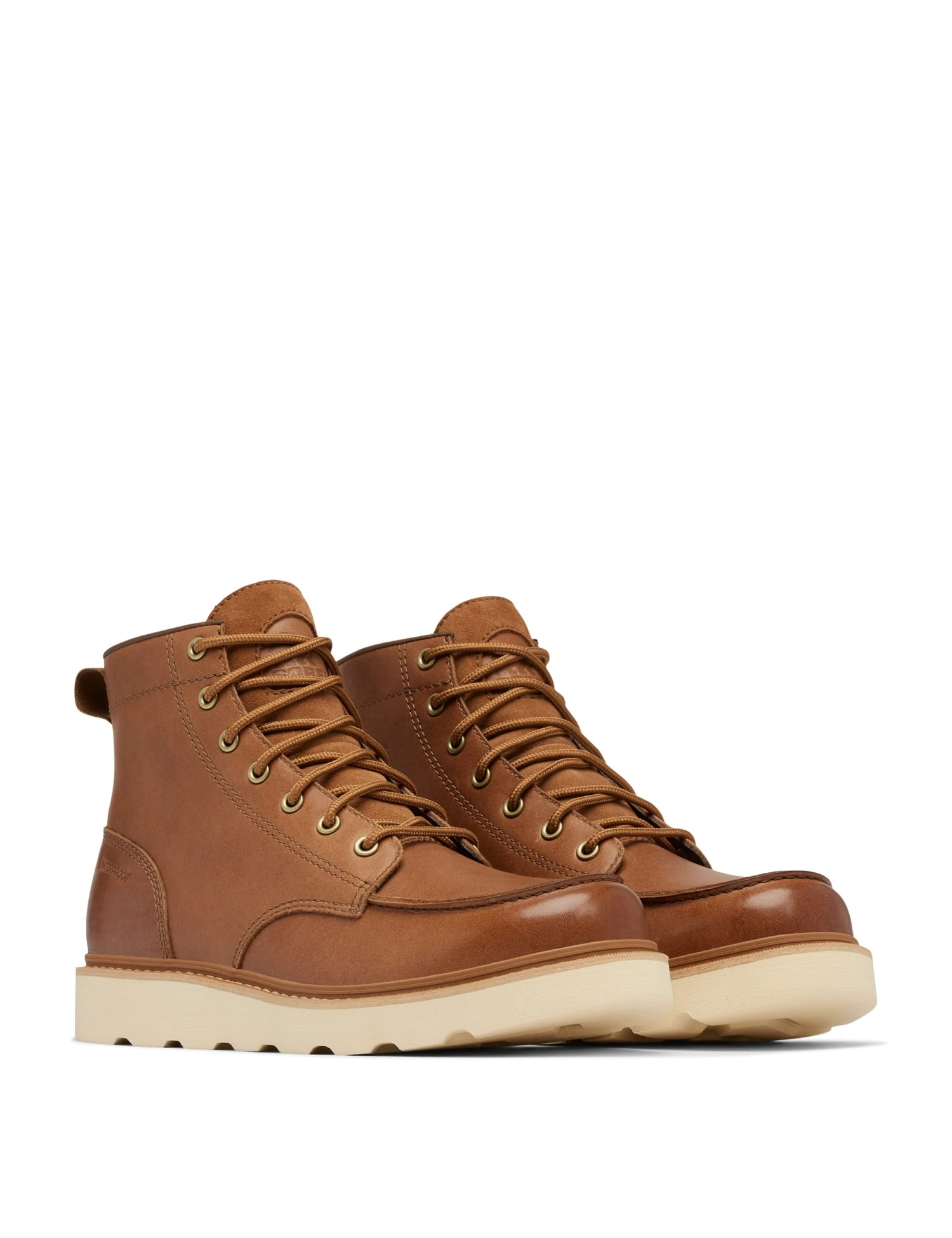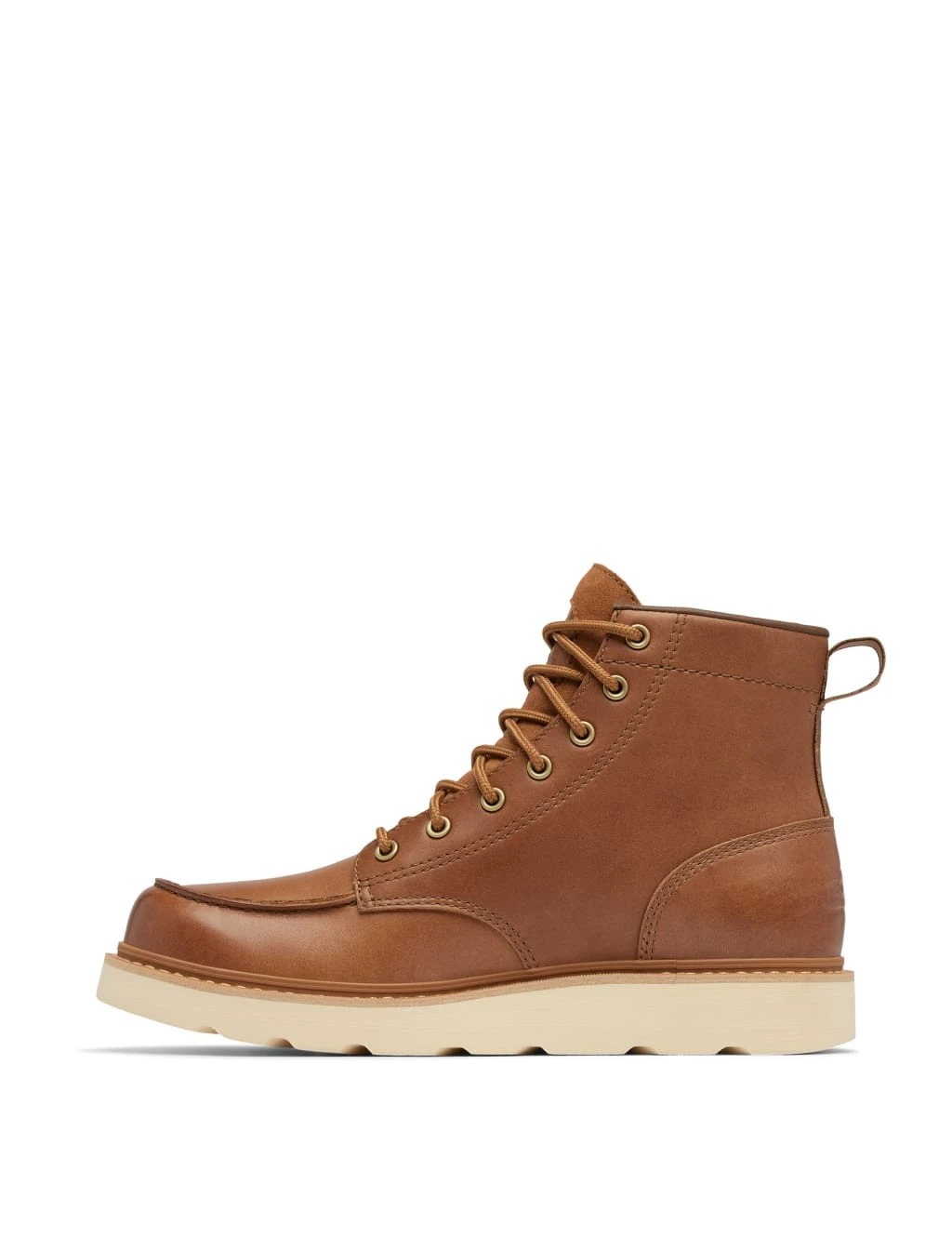These Sorel boots are a stylish and practical choice for cooler weather. This versatile design features smooth leather uppers with a water-resistant finish that keeps your feet dry on rainy days. A moulded footbed ensures all-day comfort, while a chunky rubber outsole provides a superior grip. Metallic eyelets and a plush suede tongue add smart finishing touches.