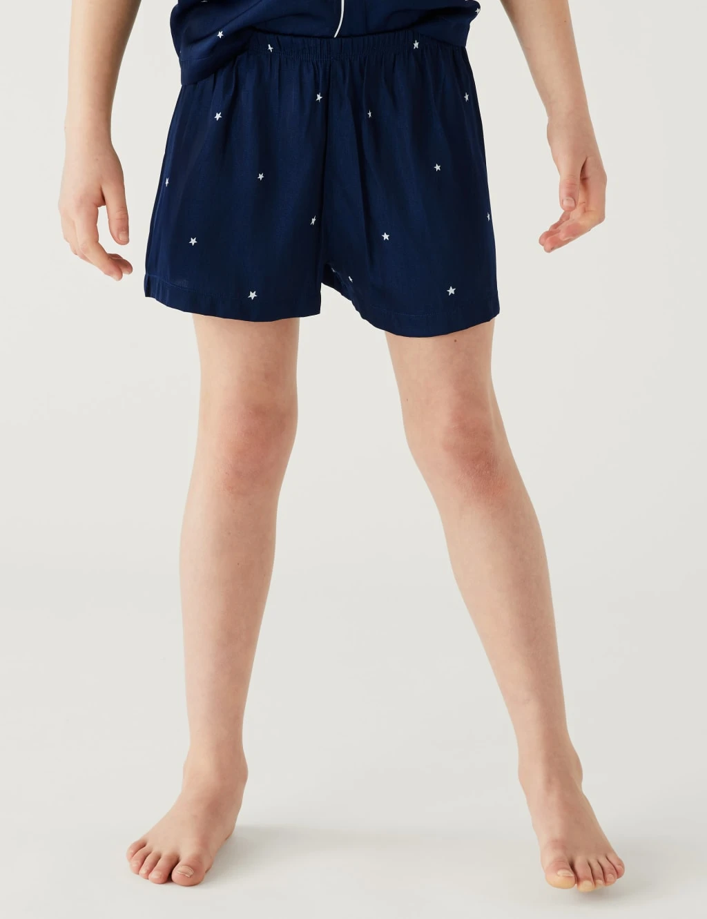 When these starry satin pyjamas come out, it’s time for bed. The regular-fit set includes a short-sleeved shirt-style top, with a revere collar, button-through front and chest pocket. Piped trims deliver a smart finish. The matching shorts feature a stretchy elasticated waistband.