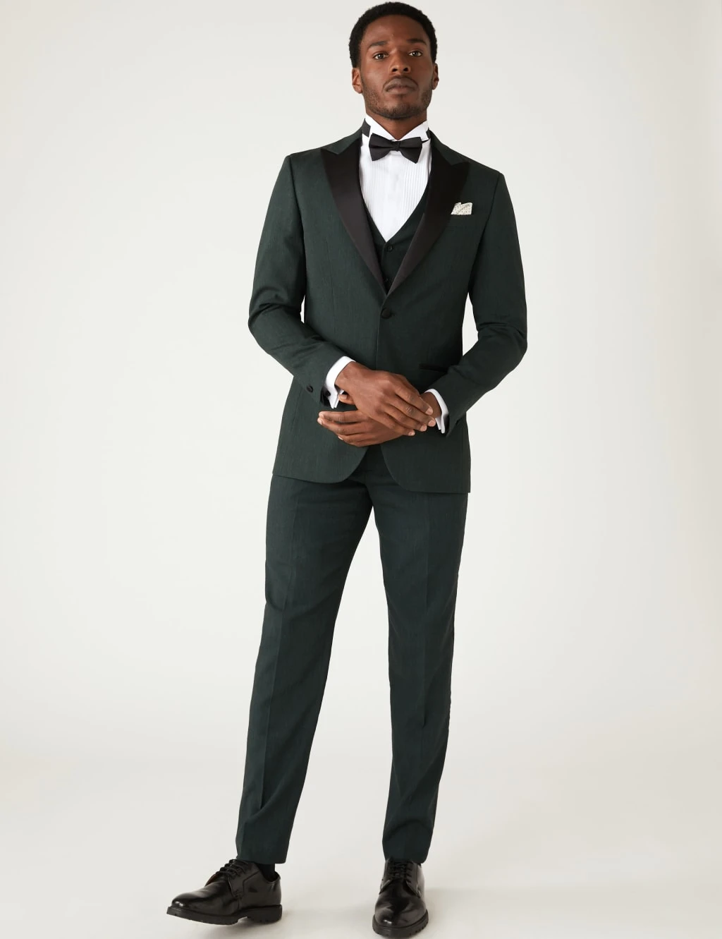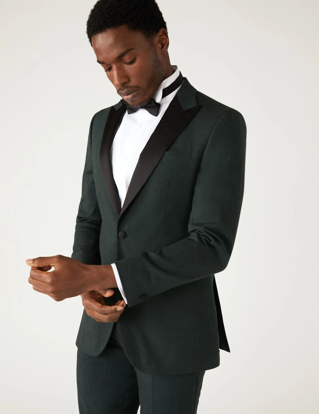 Our classic tuxedo jacket is crafted at the Nova Fides mill in Italy to ensure the highest quality. It’s cut to a sleek tailored fit with a simple single breasted design. The easy-to-iron piece is made from Linen Miracle™ fabric, which looks and feels like linen but creases less. Added stretch in the fabric helps to keep it in shape. The peak lapels have the traditional tux-style sheen, which contrasts with the lightly textured fabric. A coordinating lining adds wearable comfort. This jacket forms part of a three-piece suit.