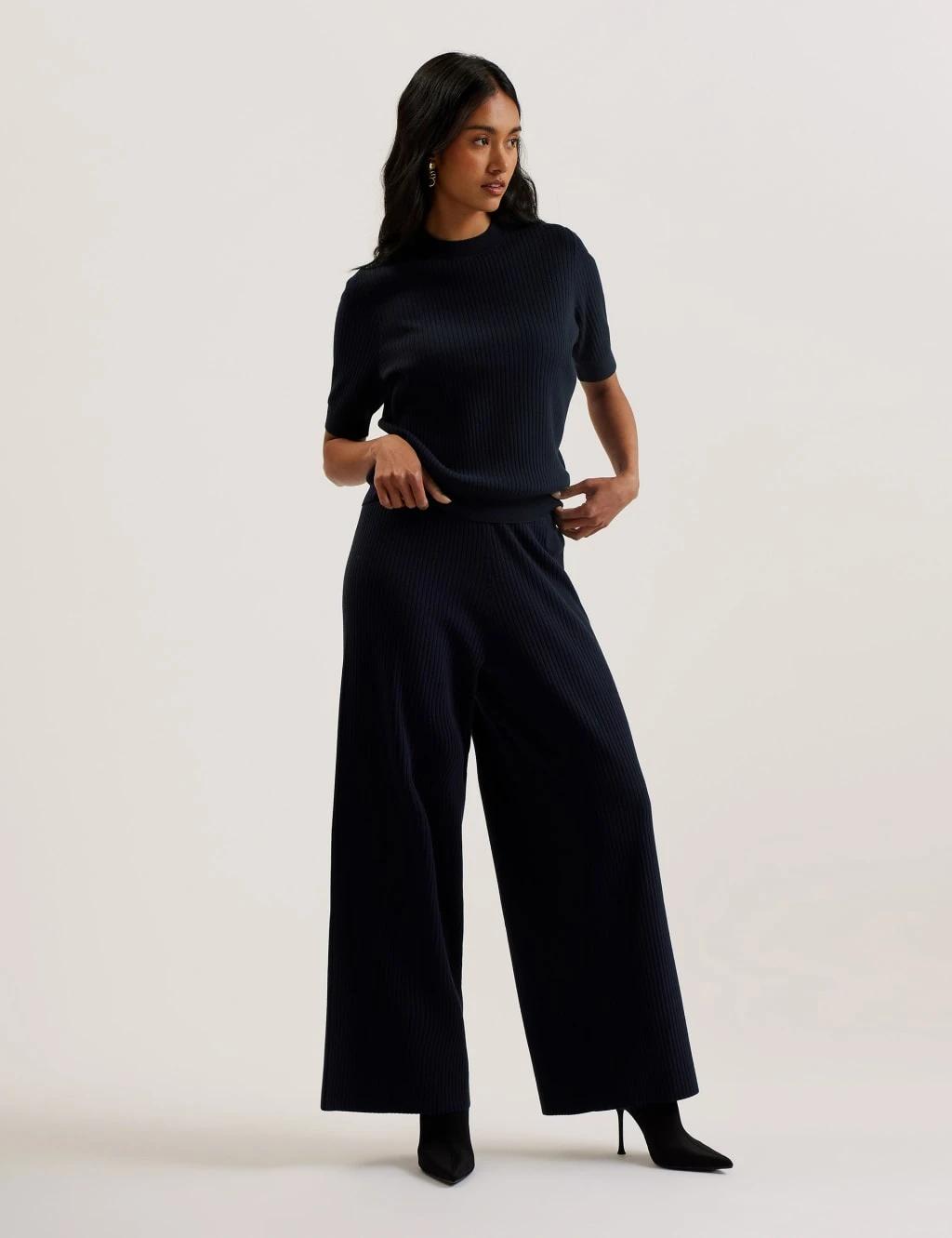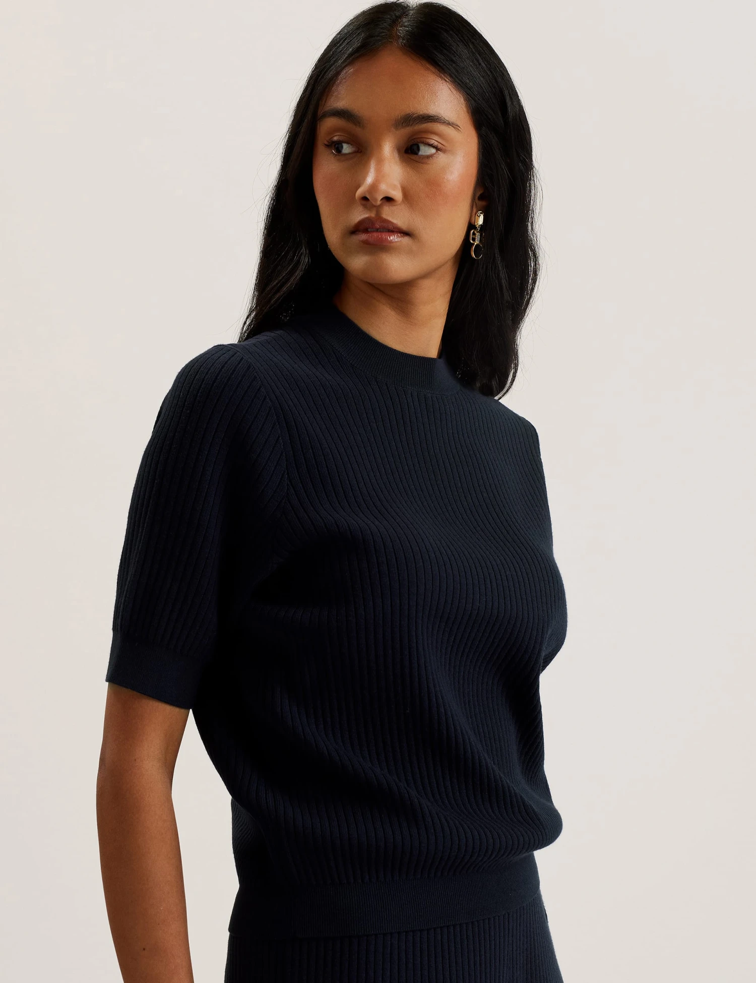 This understated knitted top from Ted Baker will bring a polished feel to smart-casual outfits. It’s made in a classic regular fit, with a feminine round neck and flattering short sleeves. The ribbed knit gives this refined piece a textured finish.