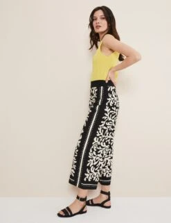 With their striking nature-inspired print and flattering shape, these Tencel™-blend culottes from Phase Eight really make a statement. They’re cut to a cropped, wide leg fit and have a broad waistband. A contrast side stripe helps to elongate the leg and adds an extra pop to these eye-catching trousers. They fasten with a concealed zip at the back.
