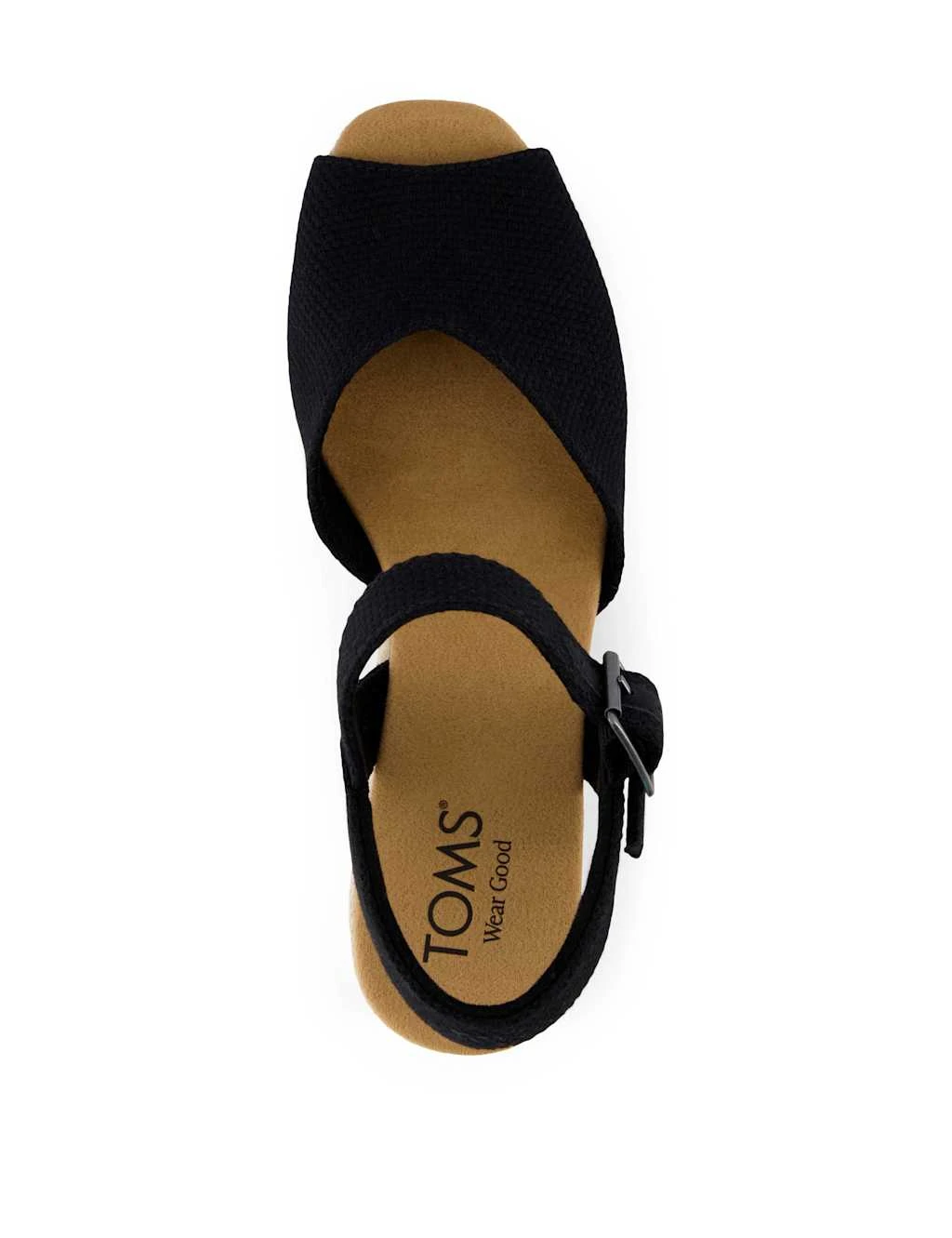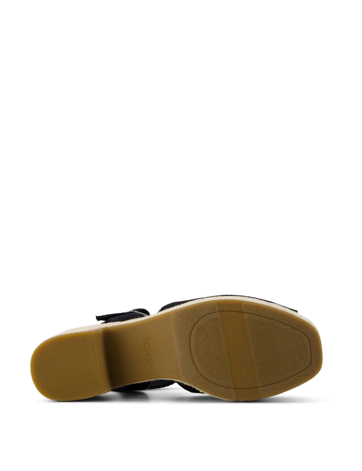These TOMS sandals bring a sophisticated finish to your warm-weather outfits. They’re designed with mid-height block heels and peep toes for a classic look. Buckled ankle straps ensure a secure fit. The uppers are crafted from a textured fabric that contrasts against the espadrille-inspired rope detailing on the outsole.