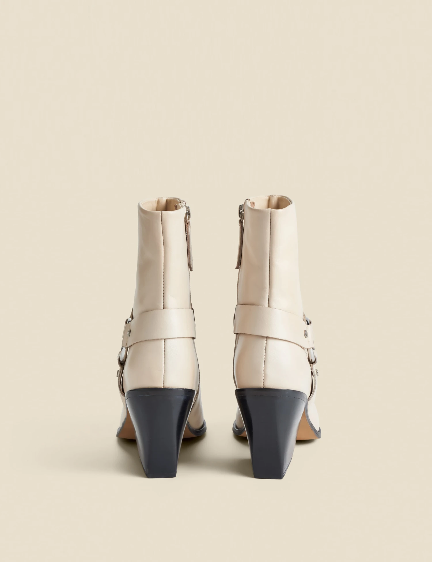 These smooth leather ankle boots by Sosandar are a trend-led addition to your footwear collection. They’re designed in a time-honoured Western style, with buckle detail and a pointed toe. The mid-height block heel is both comfortable and easy to wear, while the side zip fastening secures them in an instant.