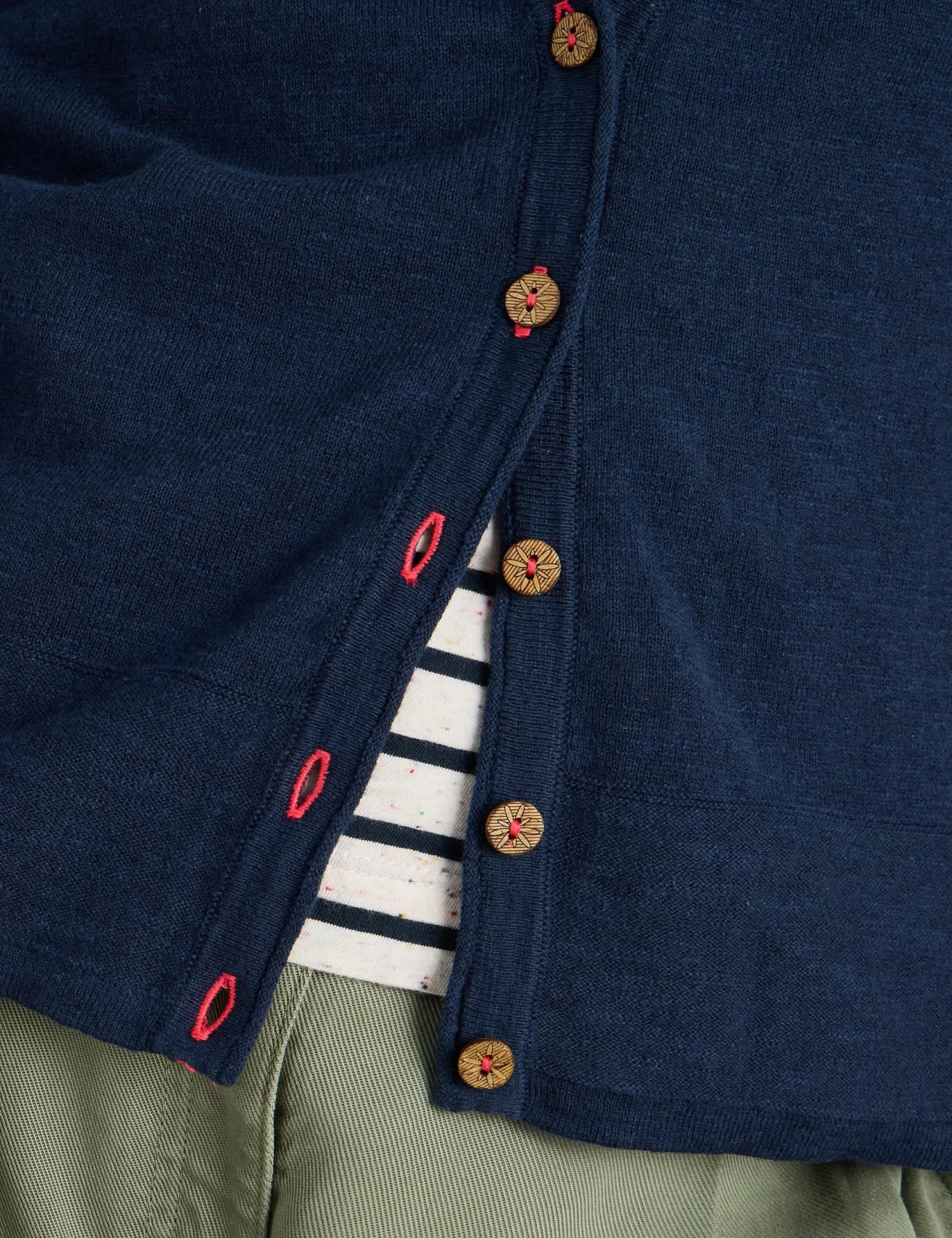 This White Stuff cardigan is made from cotton-rich yarn with linen for a wonderfully lightweight feel. It’s knitted in a regular fit for a timeless silhouette, with a deep v-neckline and breezy 3/4 length sleeves.