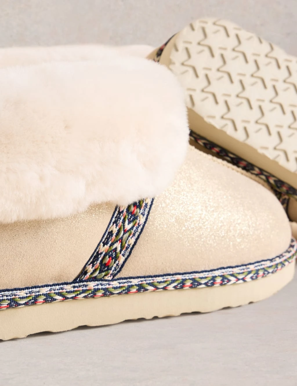 Keep your toes toasty in these suede slipper boots from White Stuff. They’re crafted in a high-ankle style for extra cosiness, and lined with snug shearling. Metallic embroidery and contrast stitching add a bohemian-inspired finishing touch.
